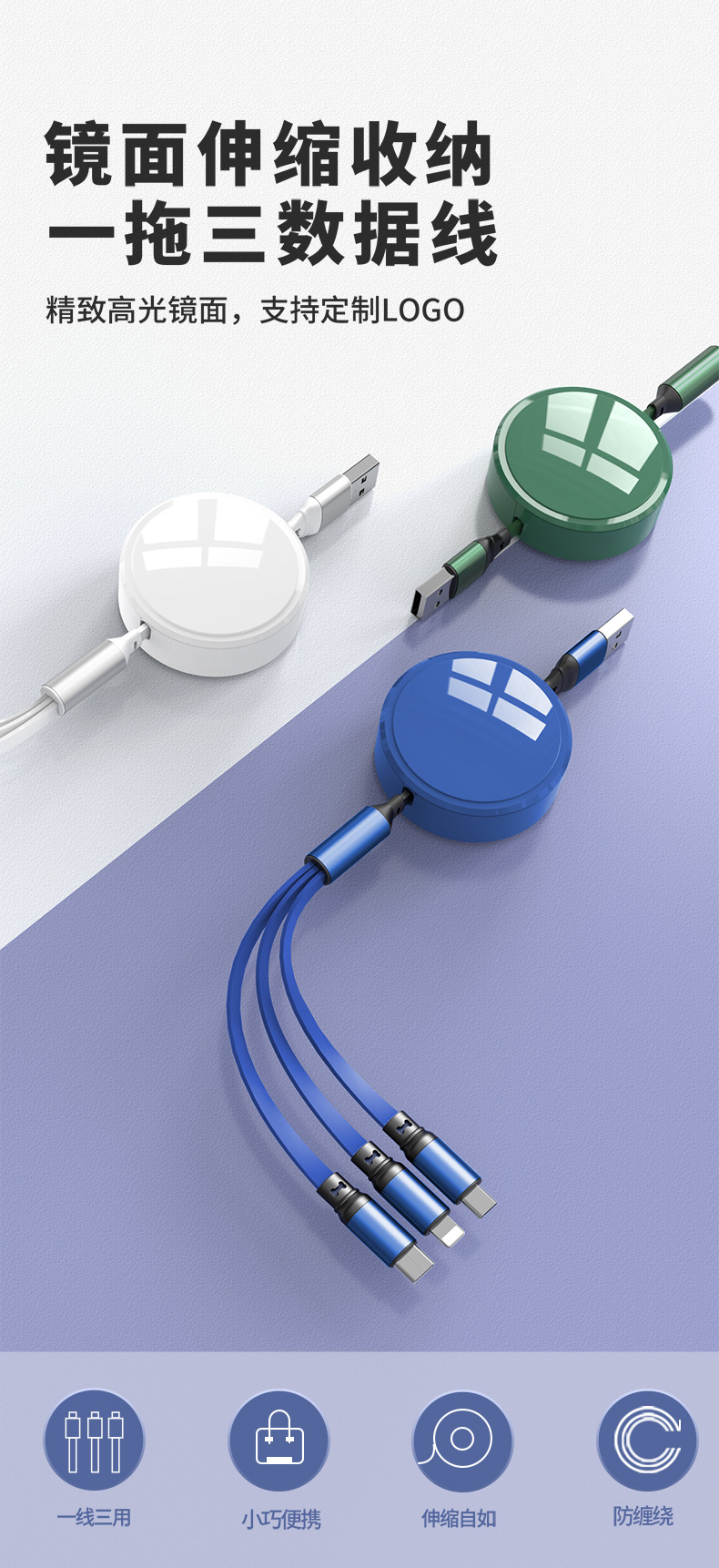 공장 다이렉트 쓰리인원 100W 텔레스코픽 원투쓰리 데이터 라인 도매 인쇄 로고 광고 크리에이티브 선물