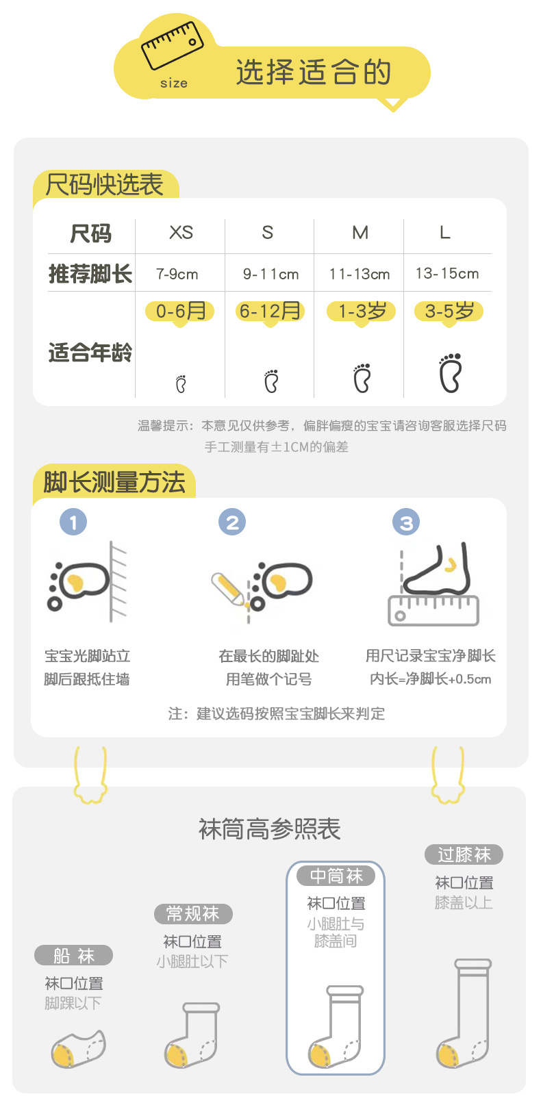 XS(适合脚长7-9cm)0-6月