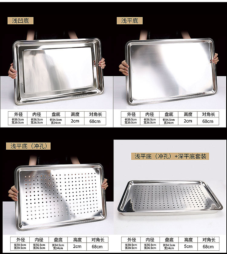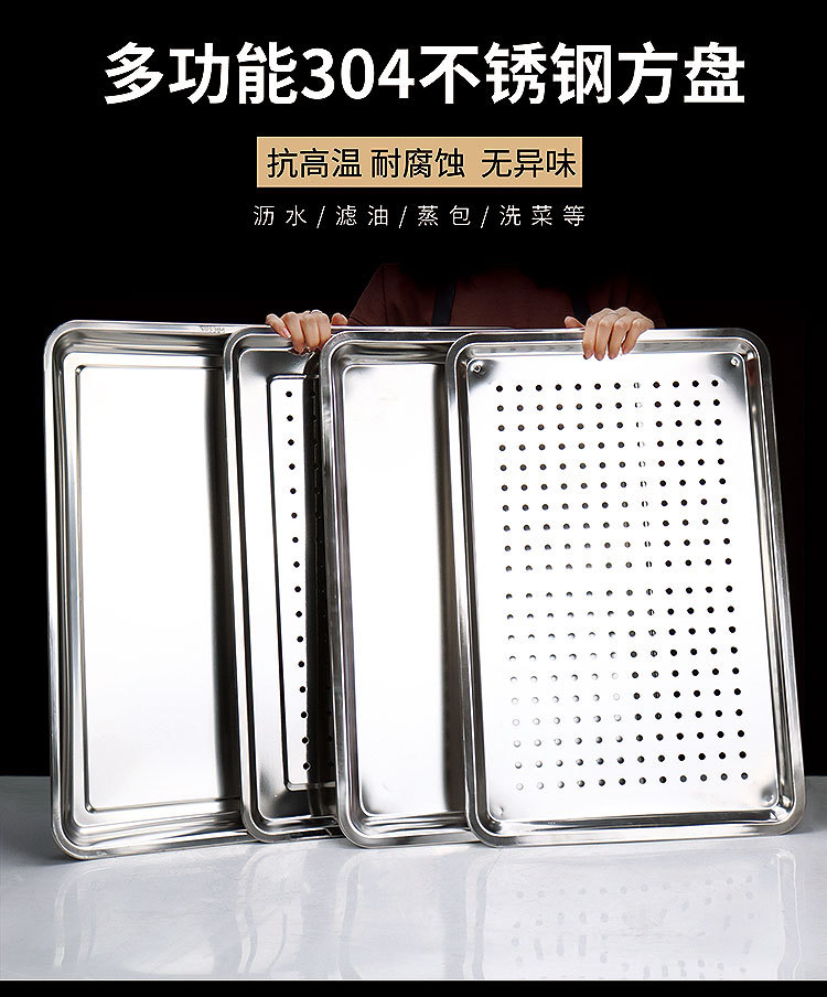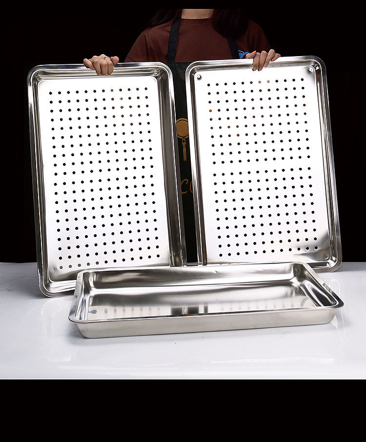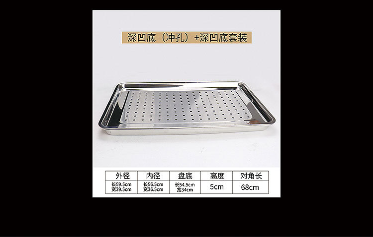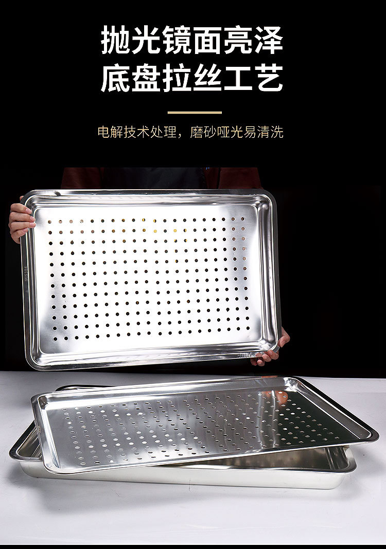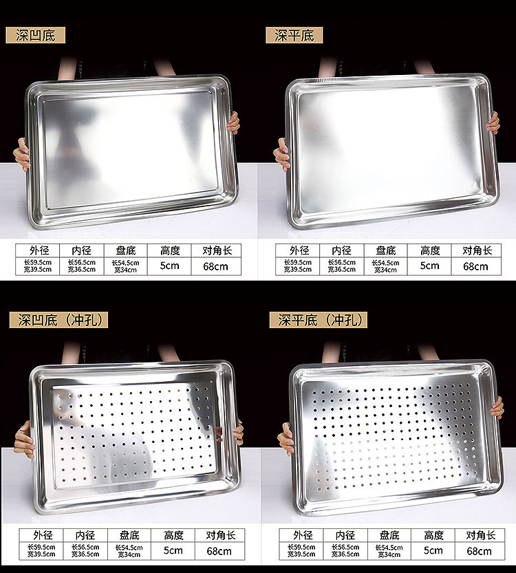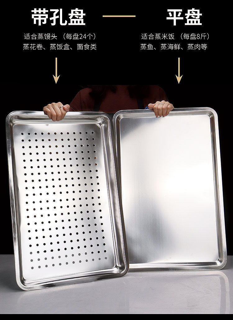 스테인레스 스틸 찜기 트레이 60*40 직사각형 평면 바닥 사각형 접시 찐 밥 트레이 상업용 찐 쌀 트럭 캐비닛 김이 트레이 베이킹 트레이