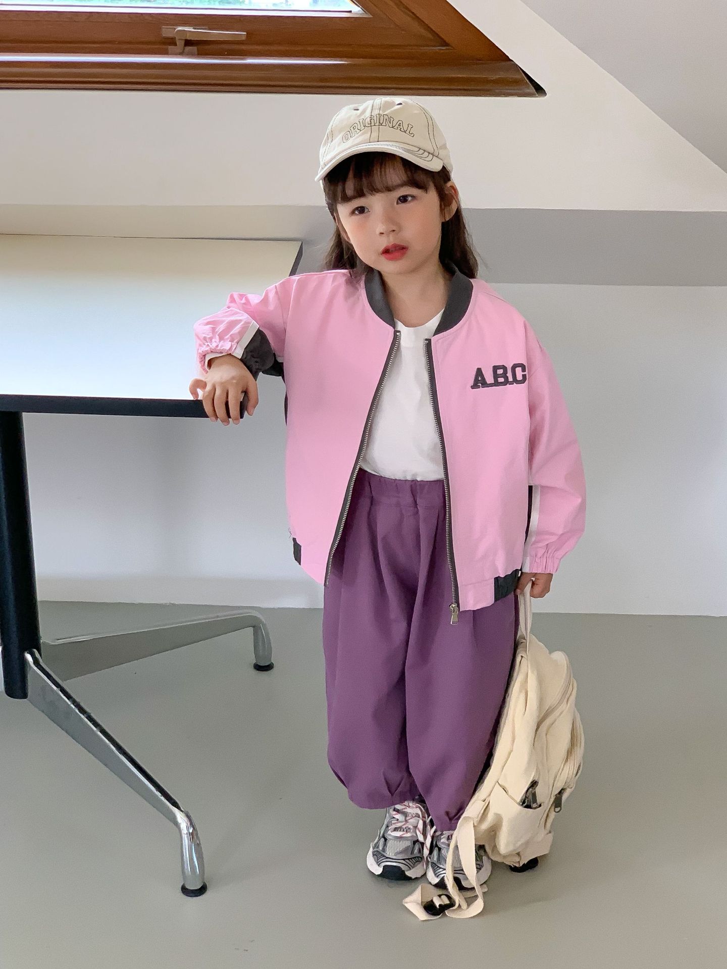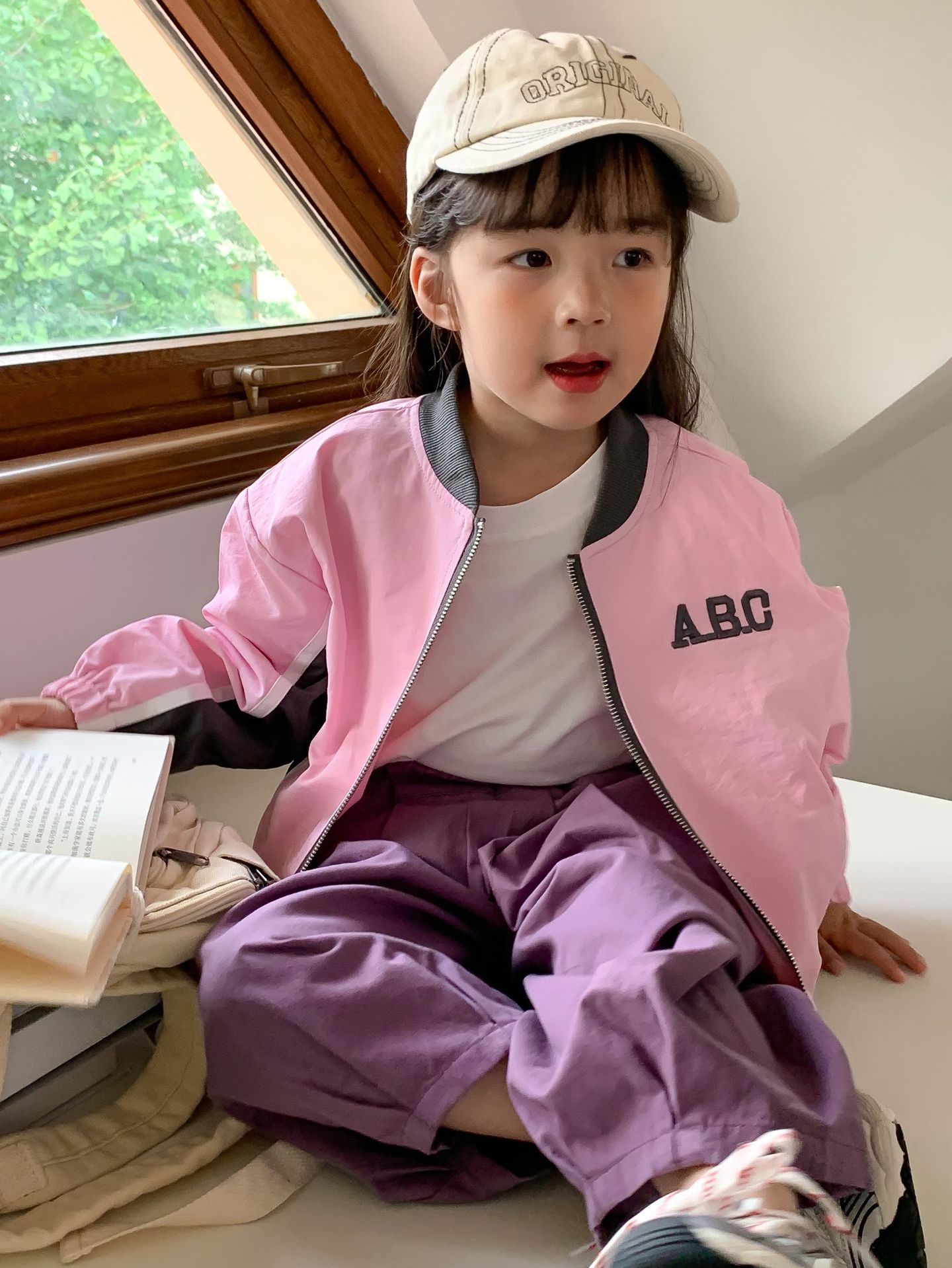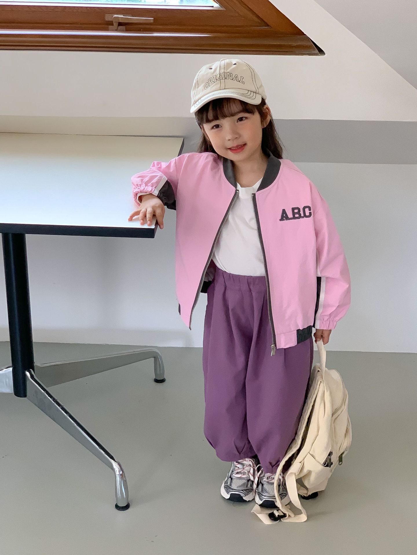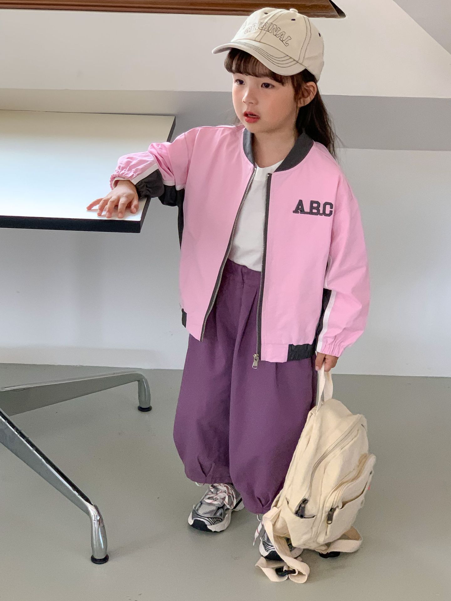 밀 필드 시즌 23 봄과 가을 새로운 한국 아동복 여아 편지 자켓 컬러 매칭 지퍼 자켓 어린이 야구 세트