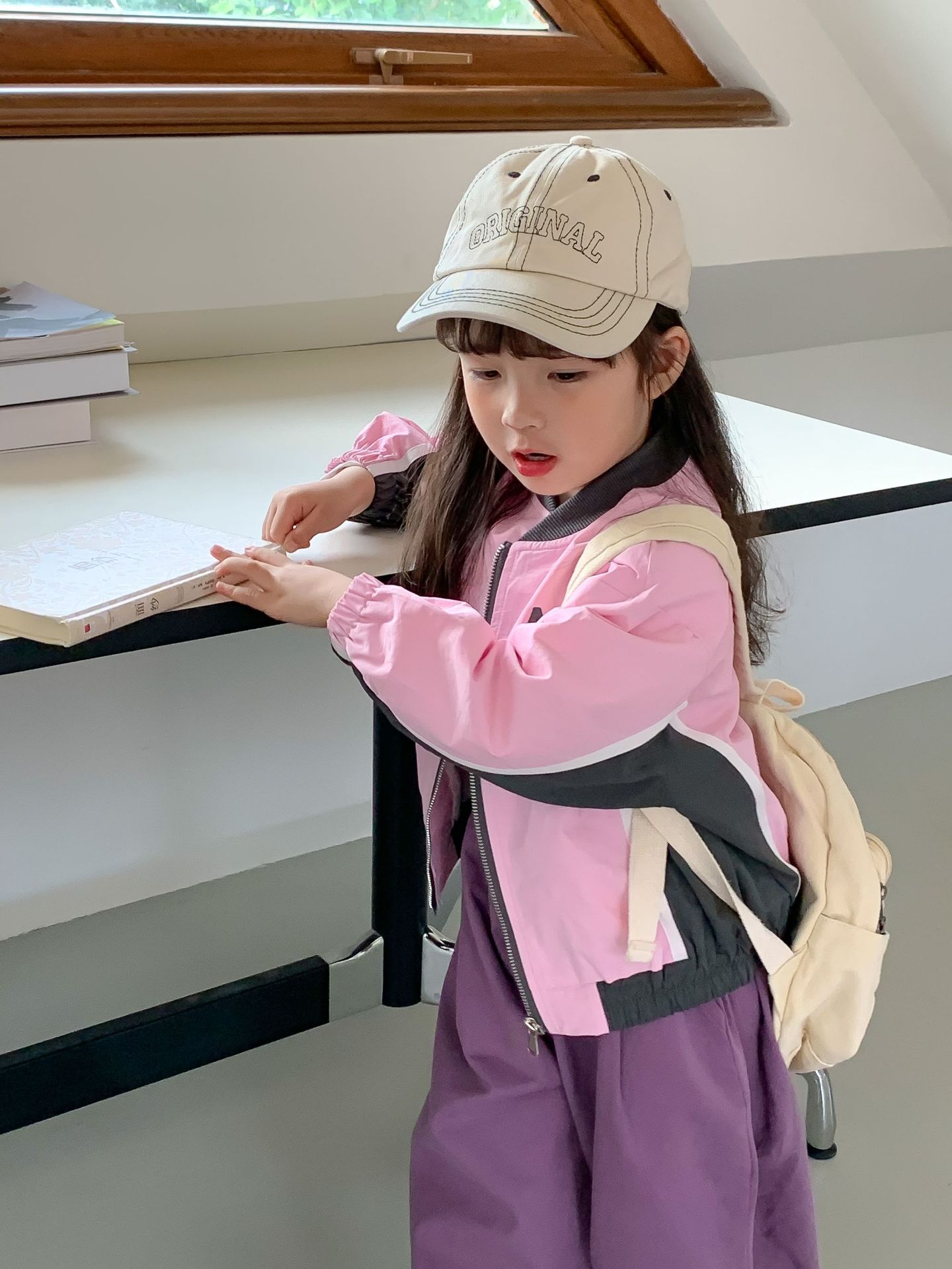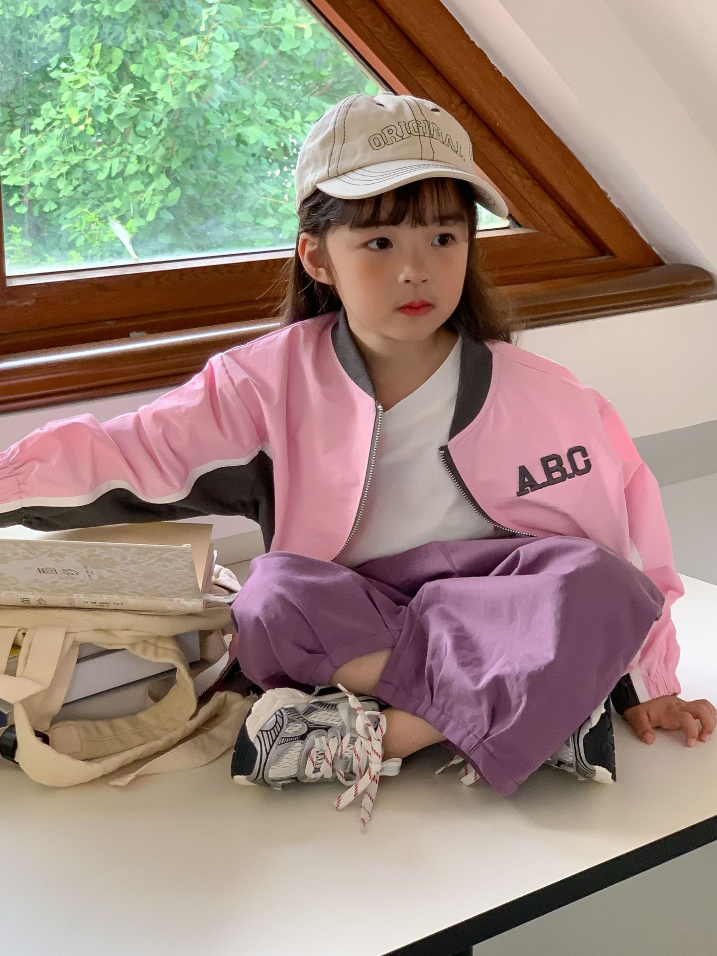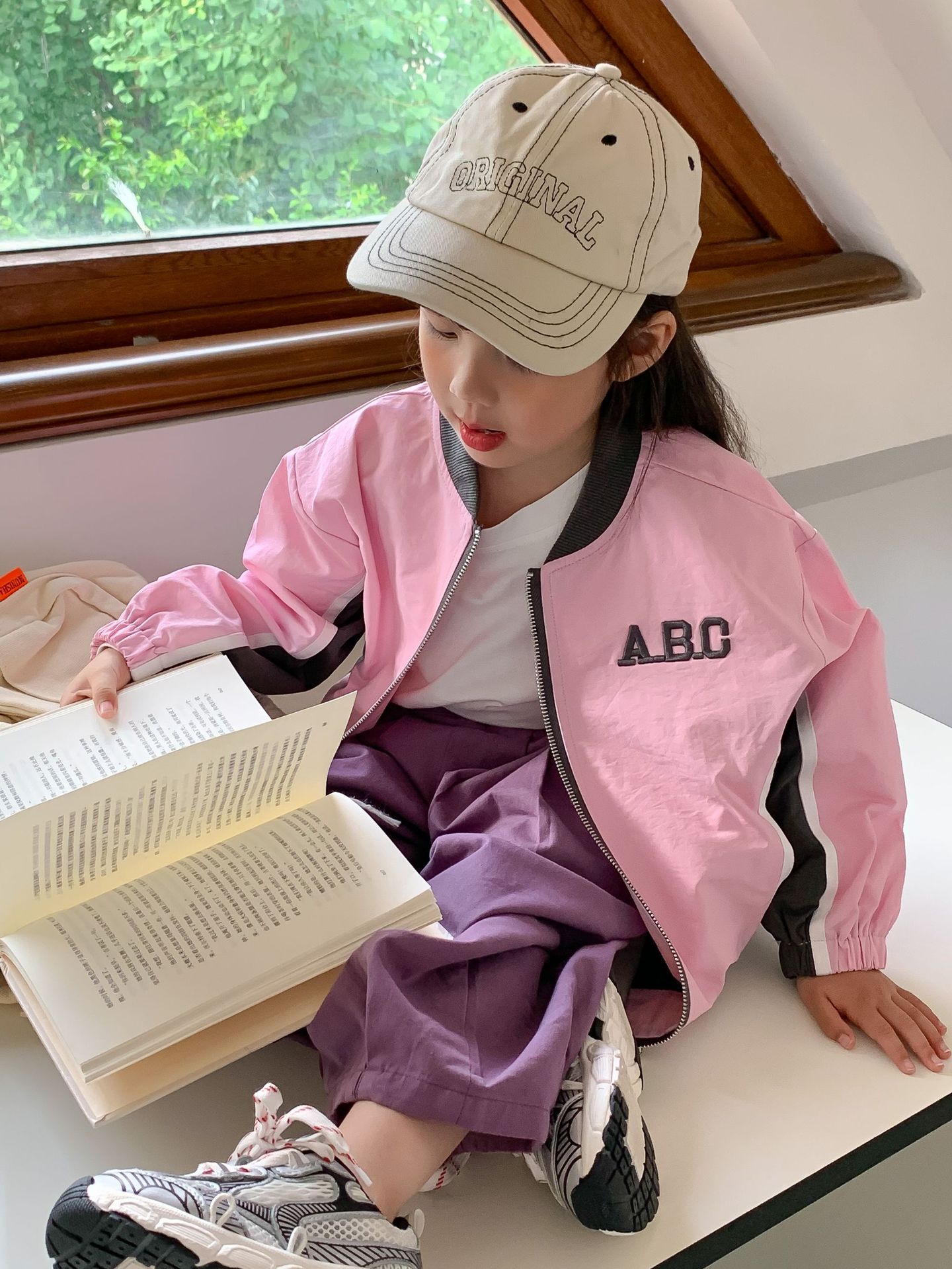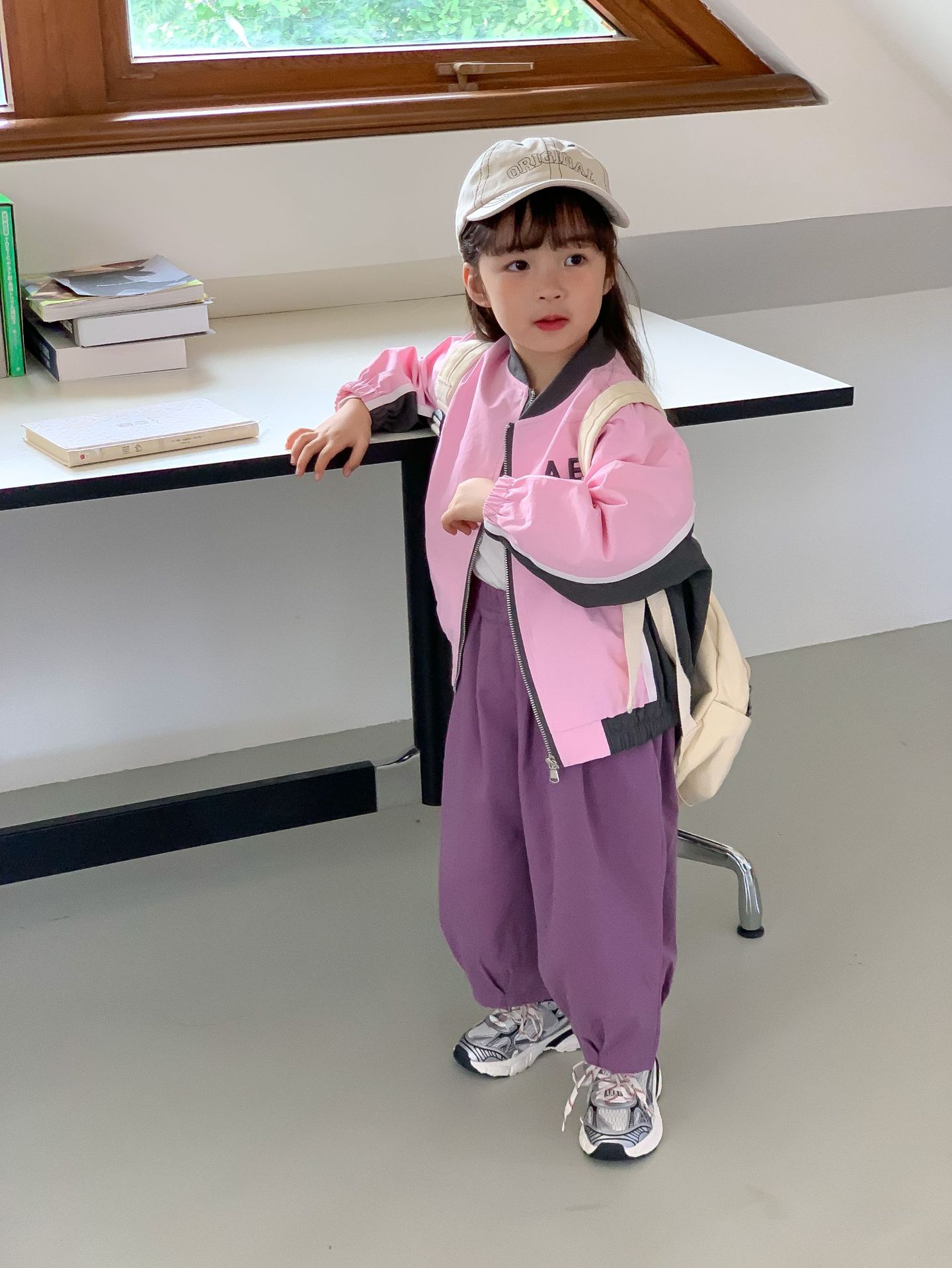 밀 필드 시즌 23 봄과 가을 새로운 한국 아동복 여아 편지 자켓 컬러 매칭 지퍼 자켓 어린이 야구 세트