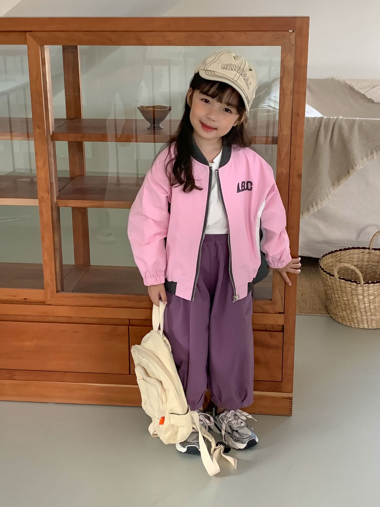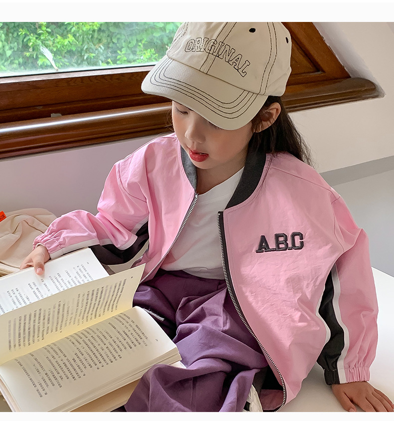 밀 필드 시즌 23 봄과 가을 새로운 한국 아동복 여아 편지 자켓 컬러 매칭 지퍼 자켓 어린이 야구 세트스토어 가기