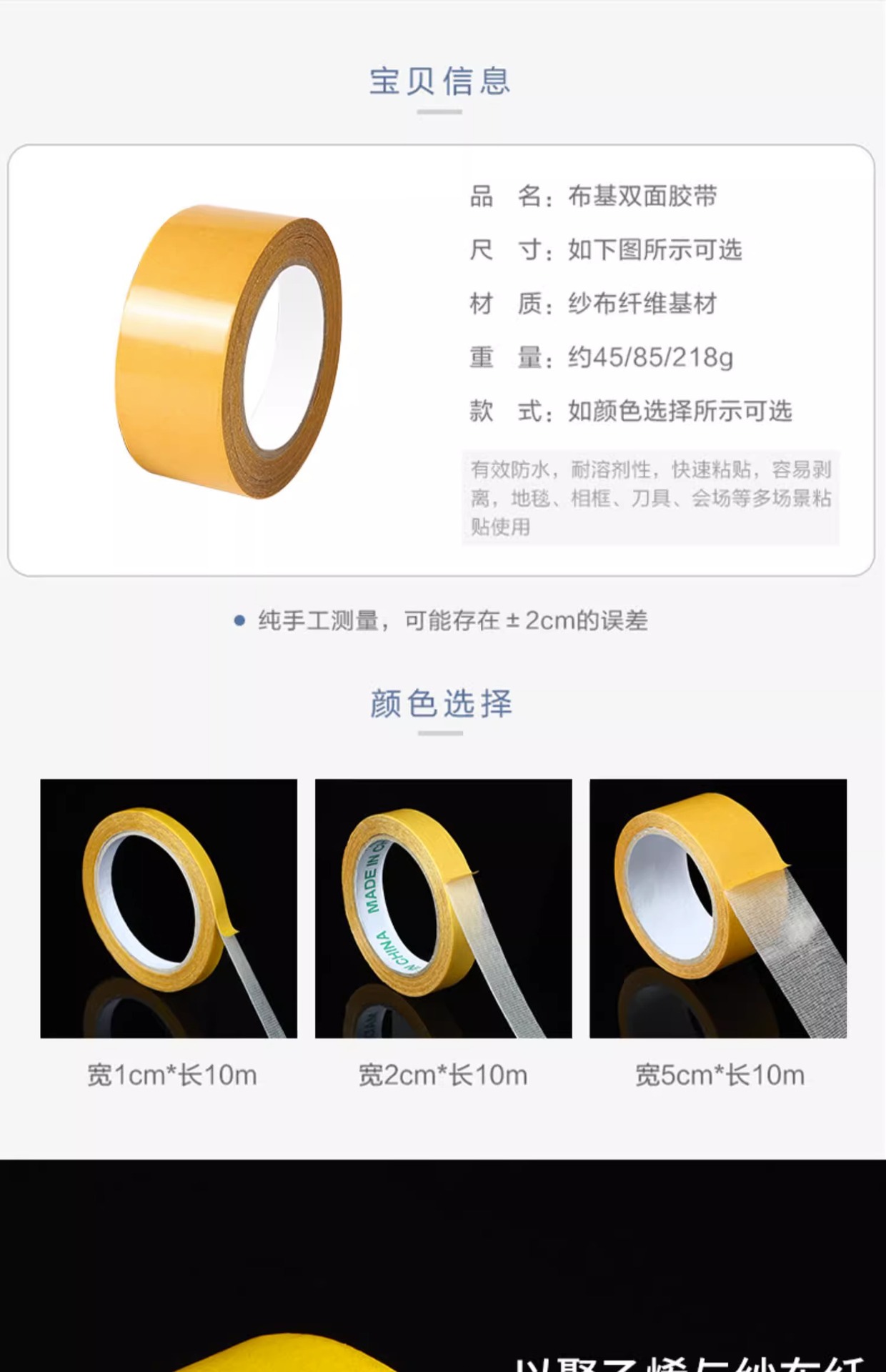 양면 천 기반 테이프, 강력하고 점도가 높은 웨딩 레스토랑 전시 장식 벽 카펫 테이프 천 기반 양면 테이프스토어 가기