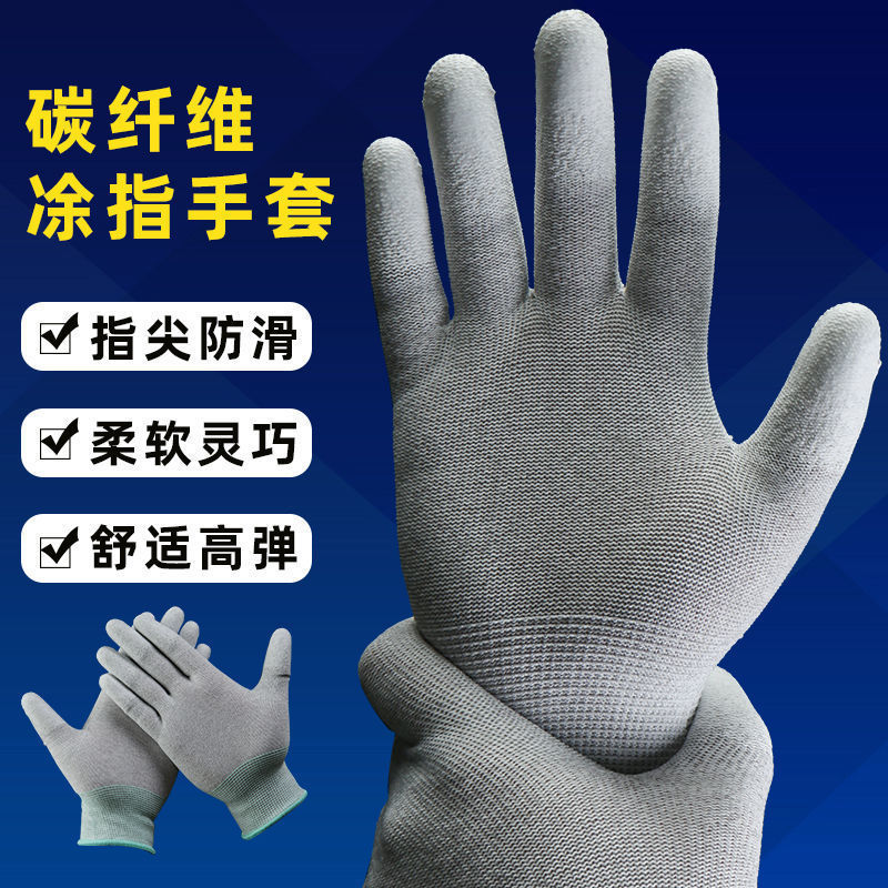 PU 탄소 섬유 핑거 코팅 노동 보호 장갑 도매 전자 부품 정전기 방지 유지 보수 내마모성 미끄럼 방지 보호스토어 가기