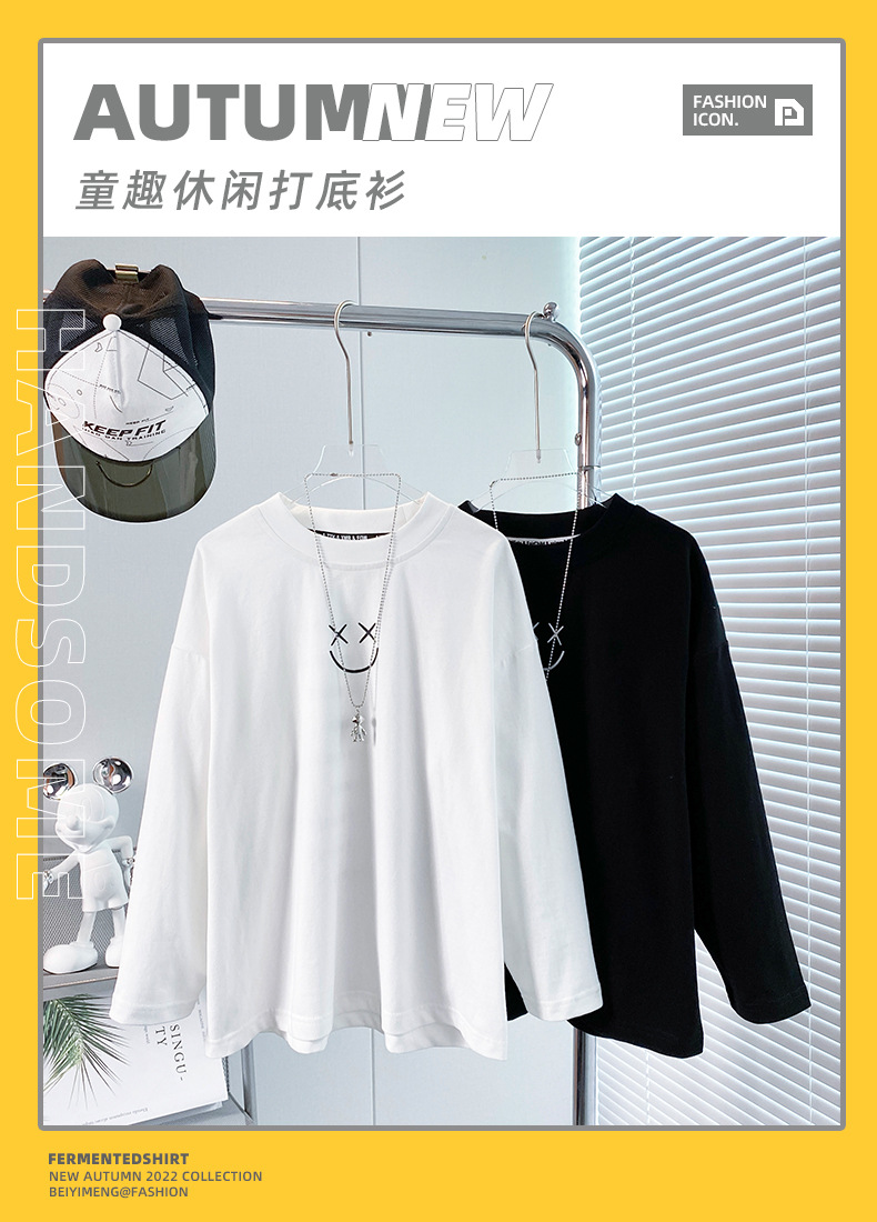 2025년 봄 가을 신상 남아용 레터 프린트 상의, 중대형 남아용 단색 이너웨어, 남아용 긴팔 티셔츠스토어 가기