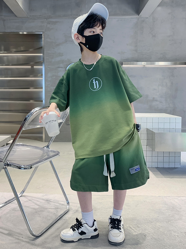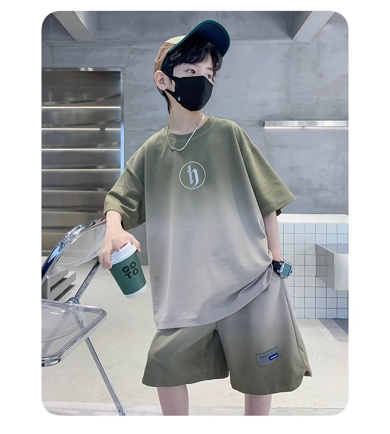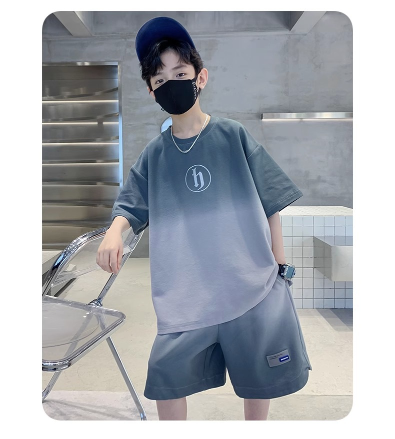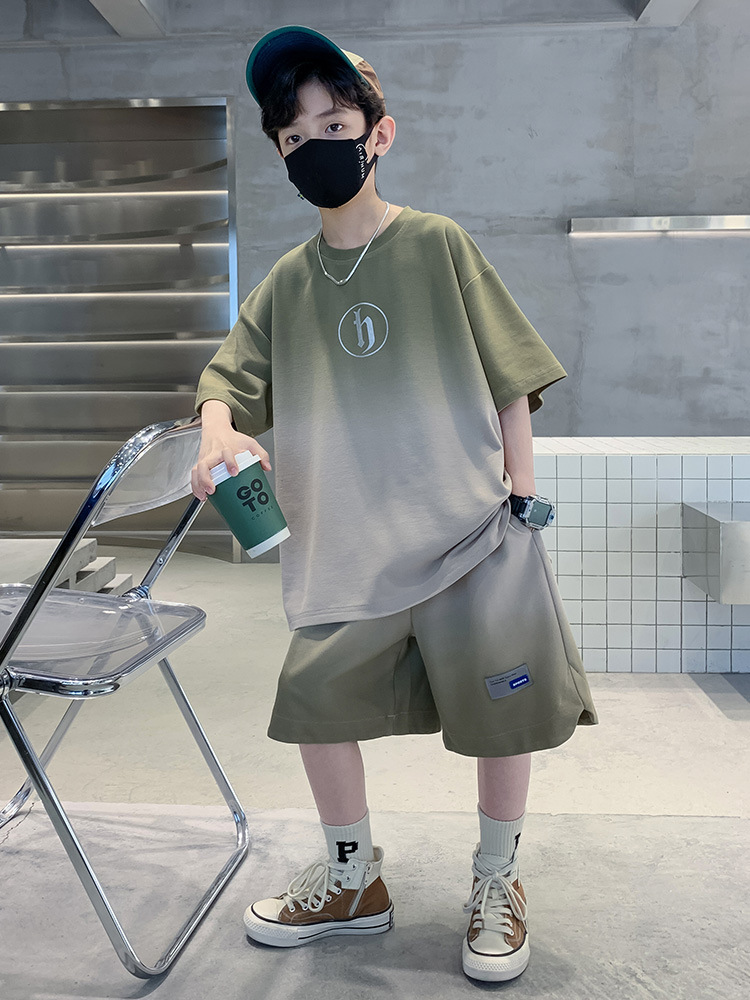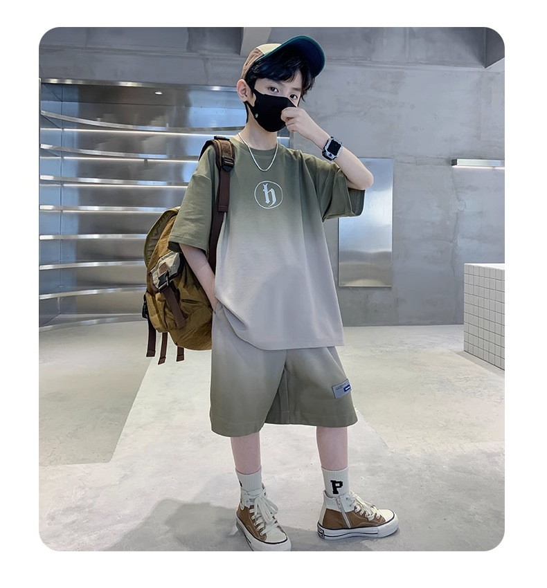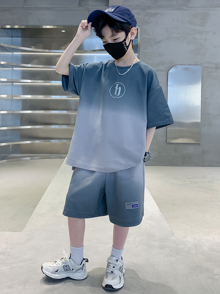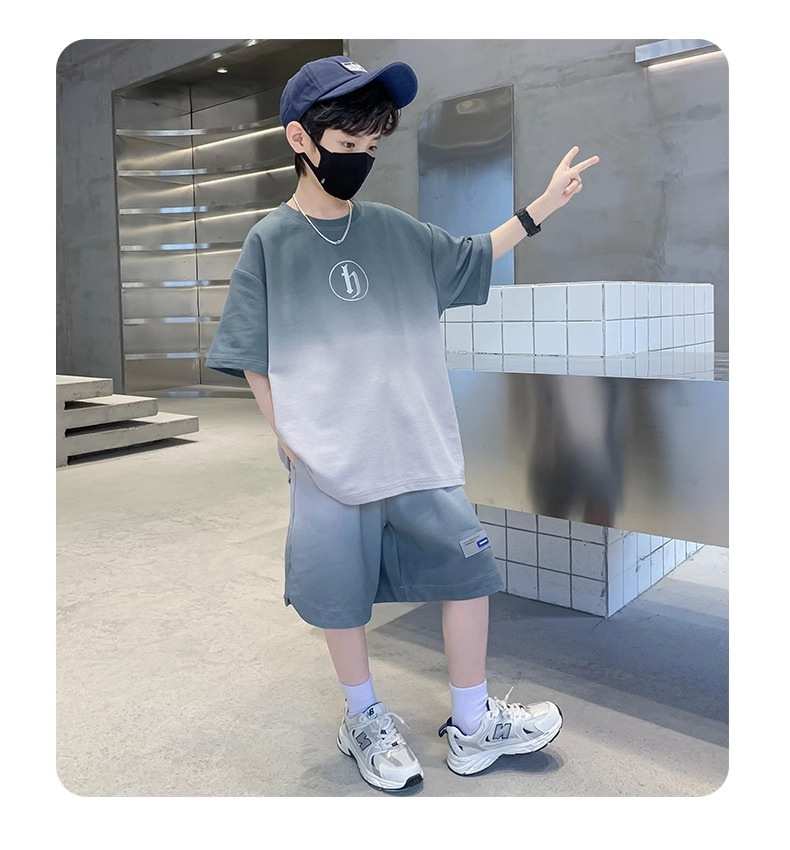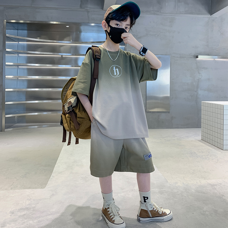 아동복 소년 여름 2023 새로운 스타일 빅 키즈 잘 생긴 느슨한 얇은 바지 캐주얼 스포츠 투피스 트렌디스토어 가기