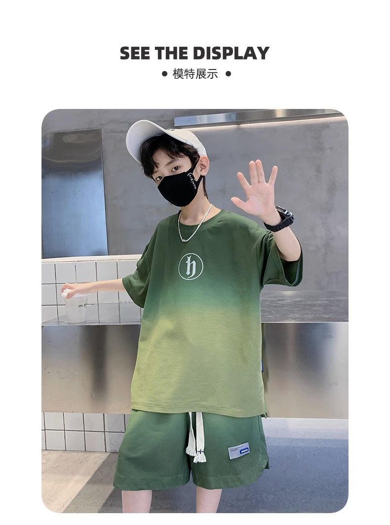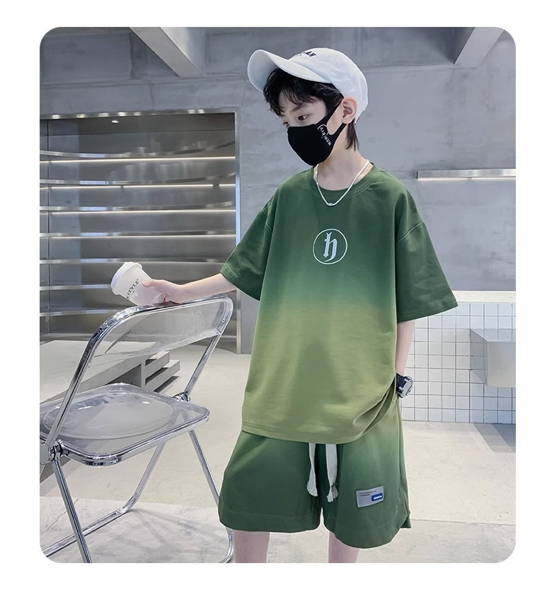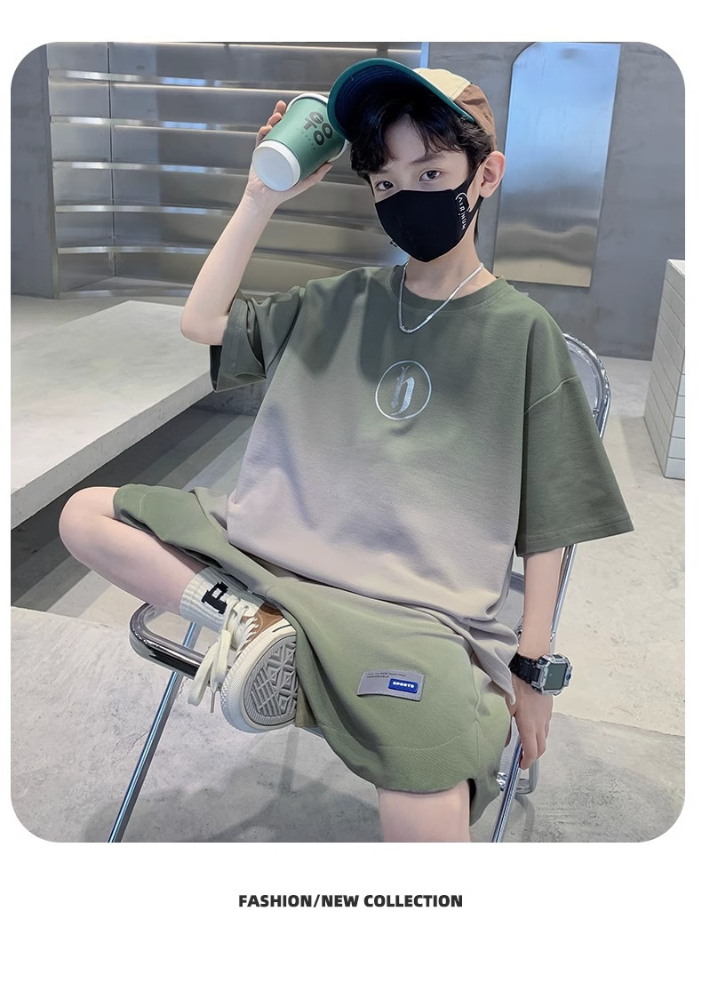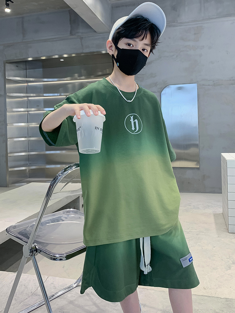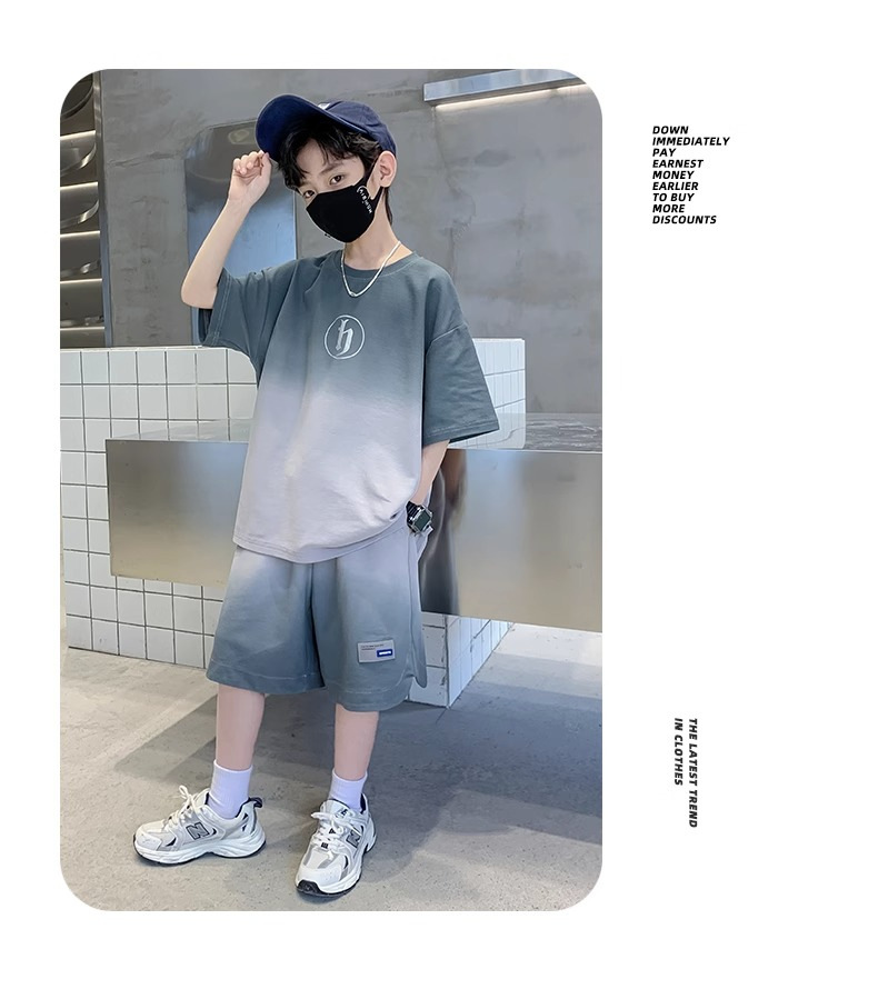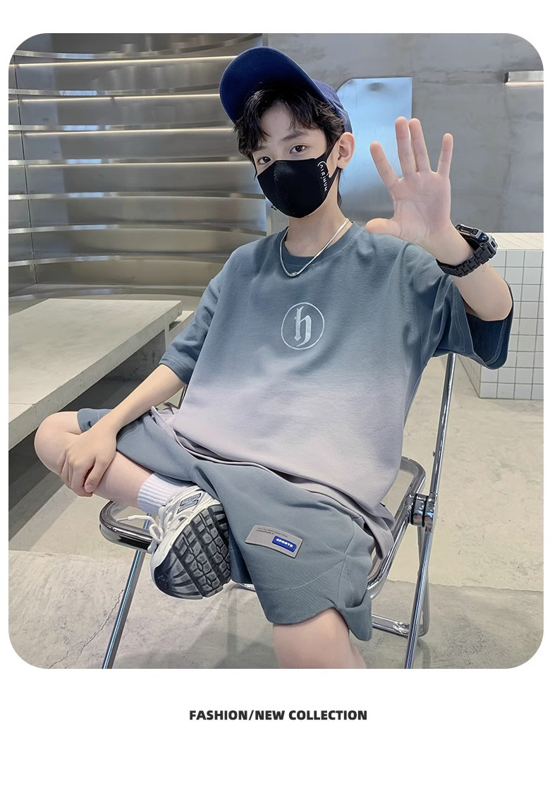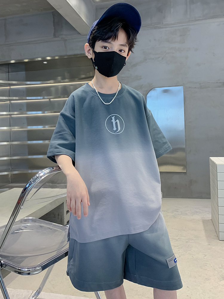 아동복 소년 여름 2023 새로운 스타일 빅 키즈 잘 생긴 느슨한 얇은 바지 캐주얼 스포츠 투피스 트렌디스토어 가기