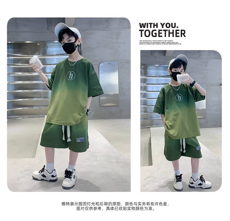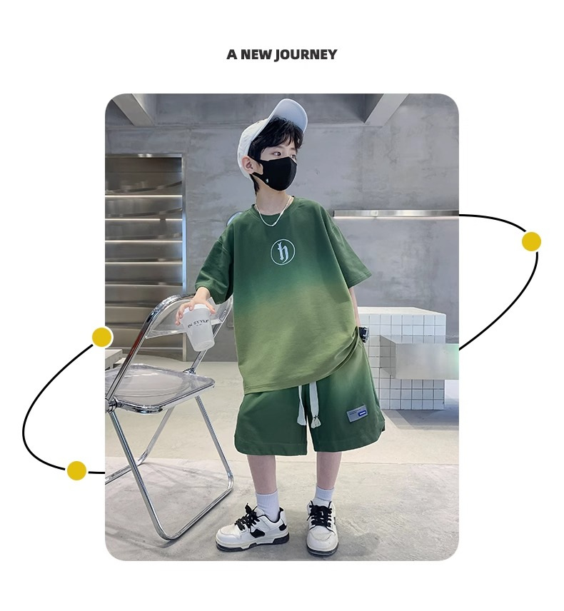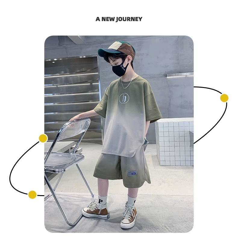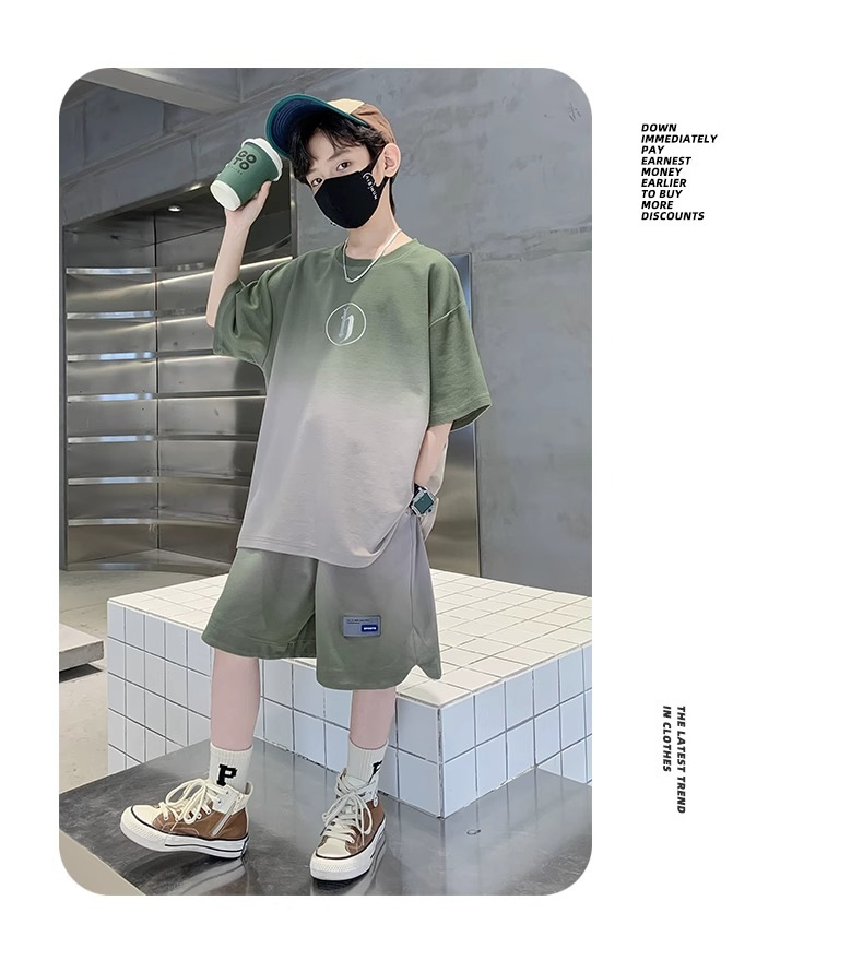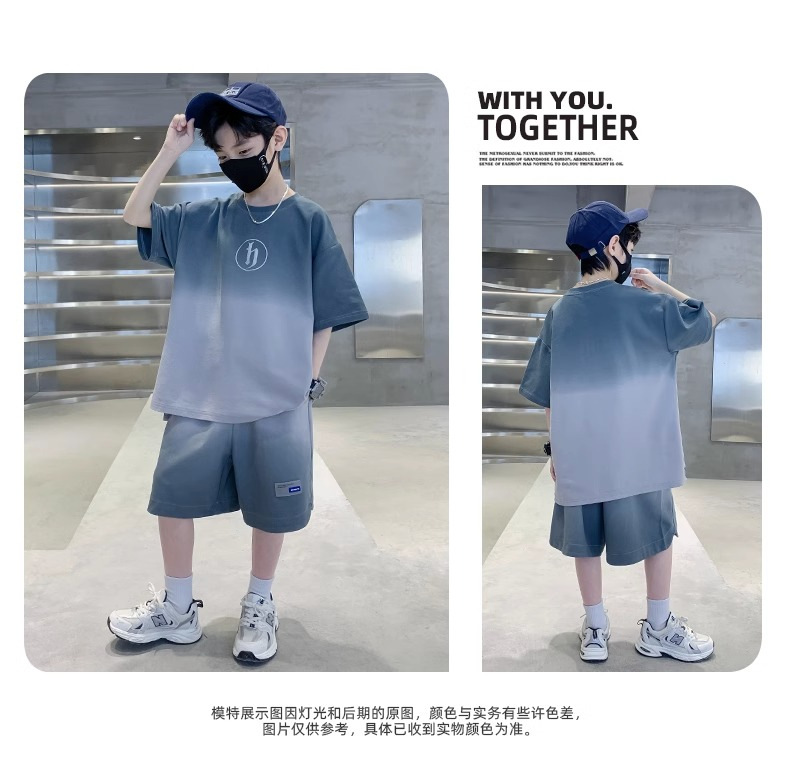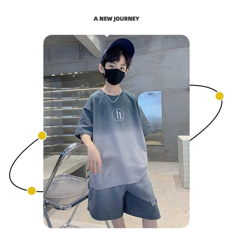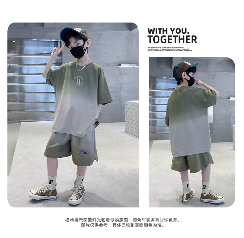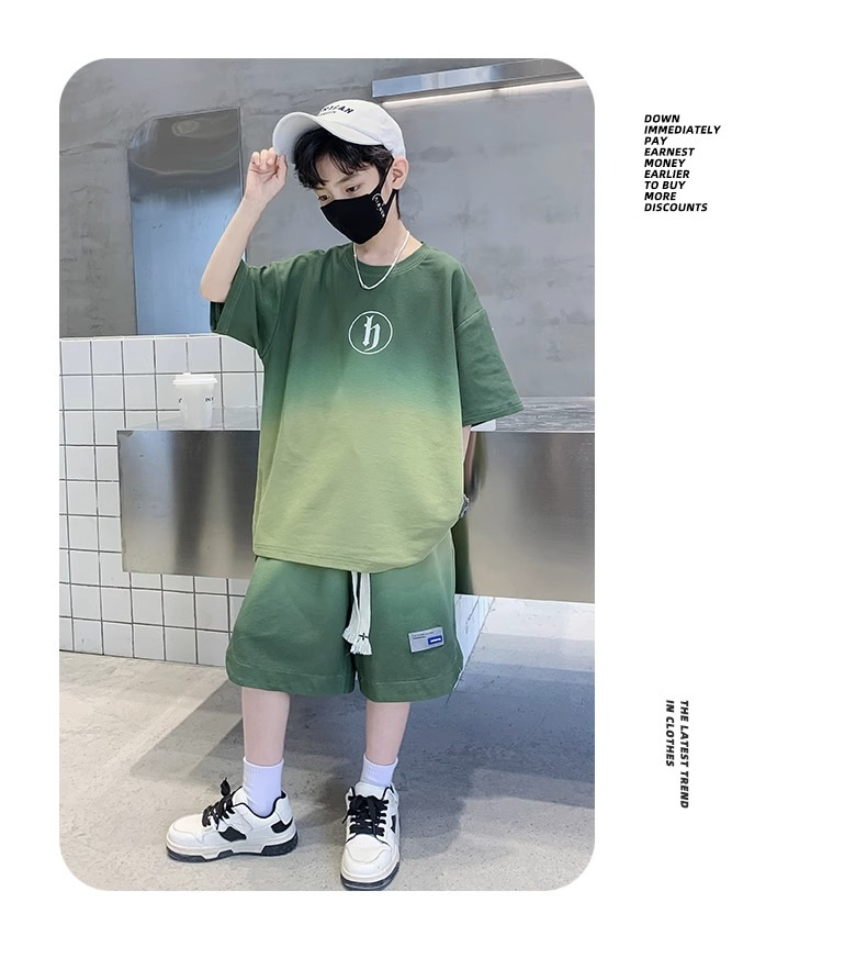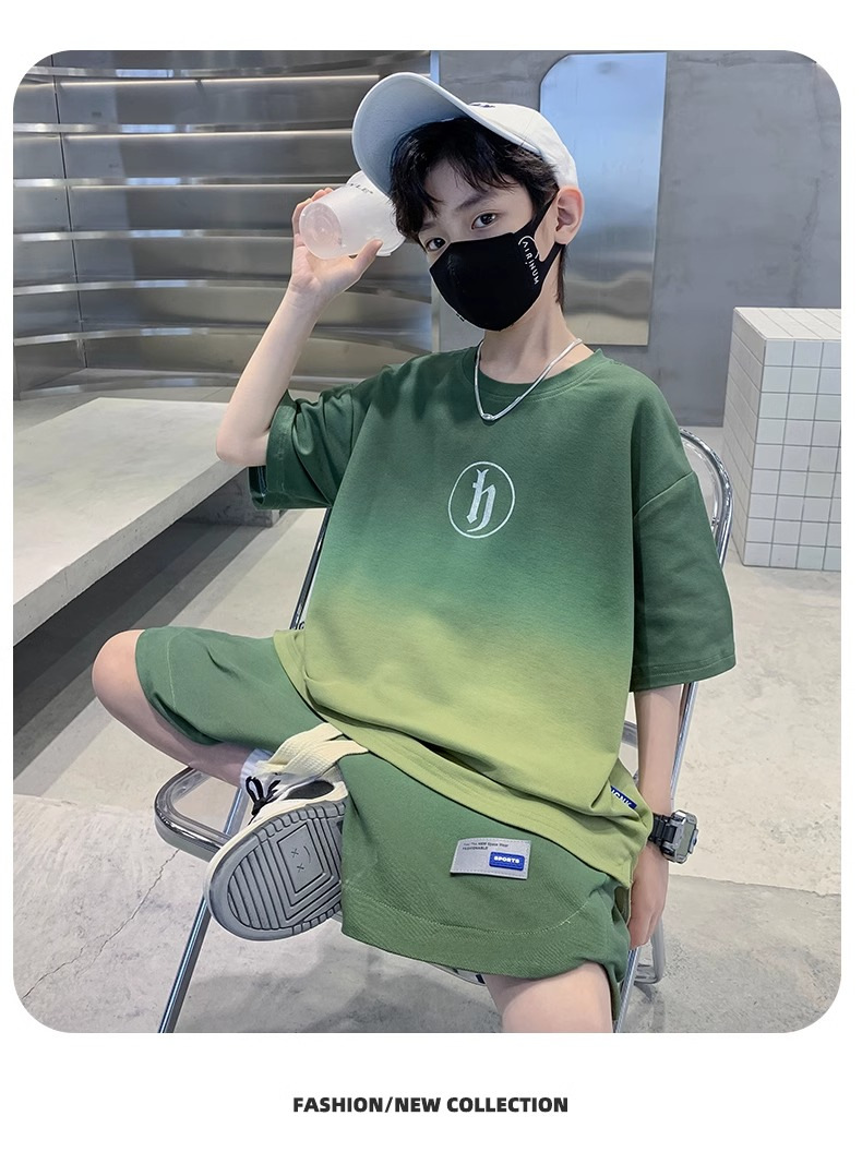 아동복 소년 여름 2023 새로운 스타일 빅 키즈 잘 생긴 느슨한 얇은 바지 캐주얼 스포츠 투피스 트렌디스토어 가기