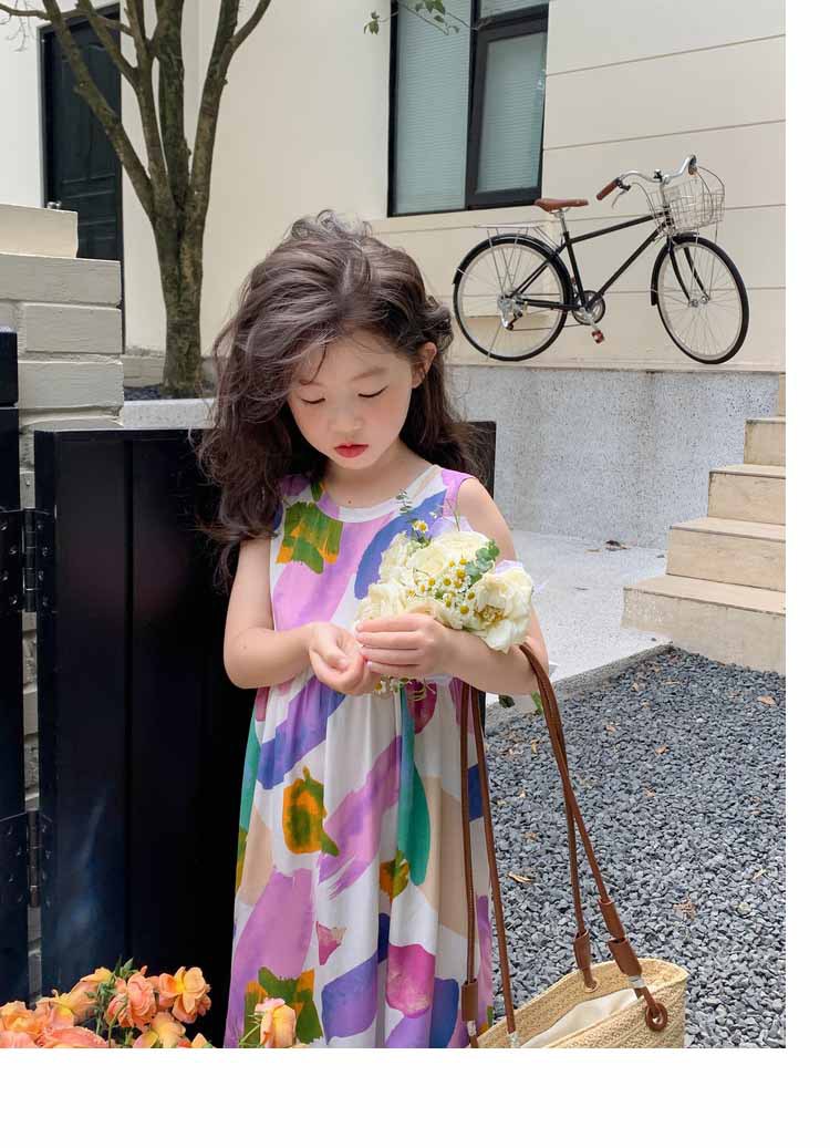 여자 원피스 한국 꽃 치마 새로운 여름 서양 스타일 조끼 치마 어린이 머리카락의 세대
