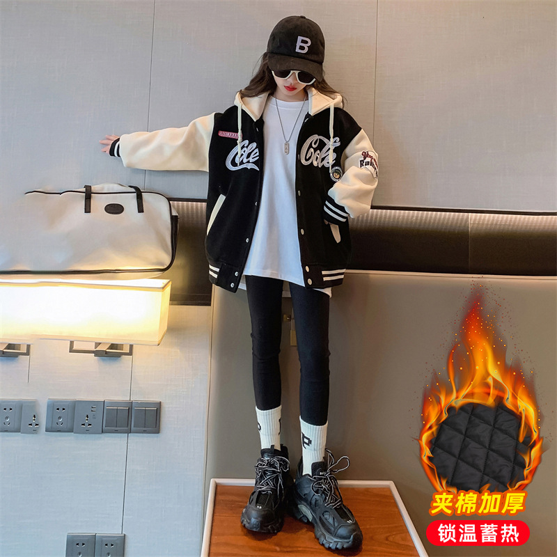여아 코트 가을 겨울 2025 신상 가을 아동복 패셔너블한 상의 여아용 퀼팅 후드 야구 유니폼스토어 가기