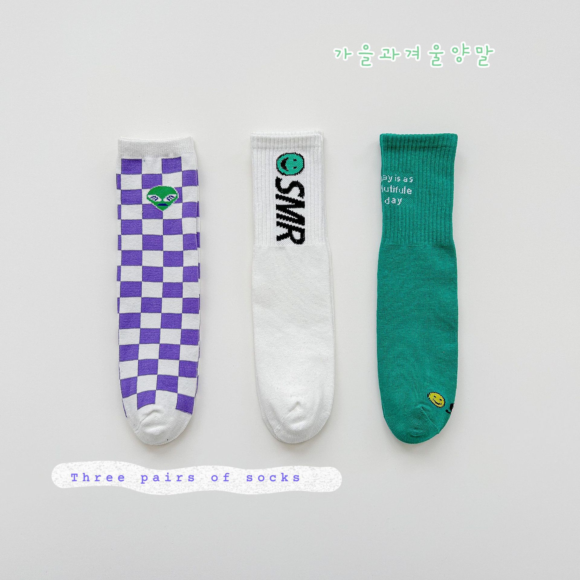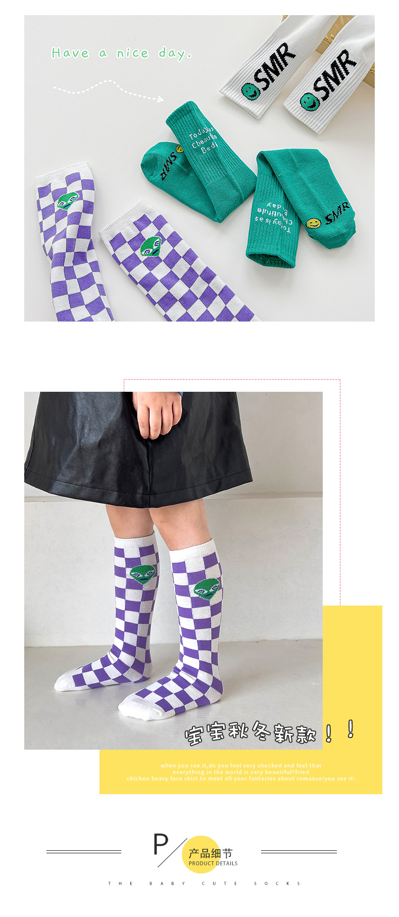 손걸 봄가을 양말 한국 스타일 아동용 롱삭스 체크무늬 스마일 남아용 인스 트렌드 양말 여아용 종아리 양말스토어 가기