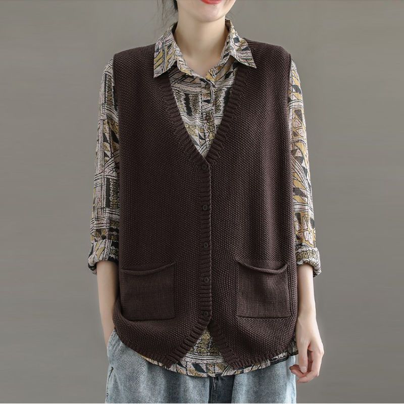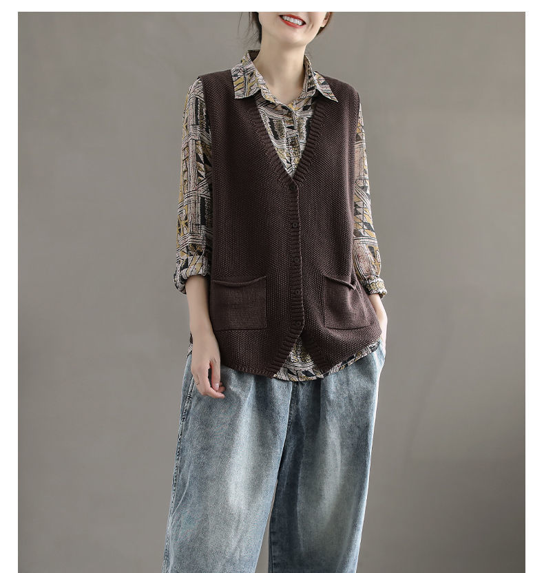 느슨한 스웨터 조끼 여자의 가을과 겨울 민소매 니트 카디건 패션 조끼 여자의 플러스 사이즈 양복 조끼 짧은 겉옷