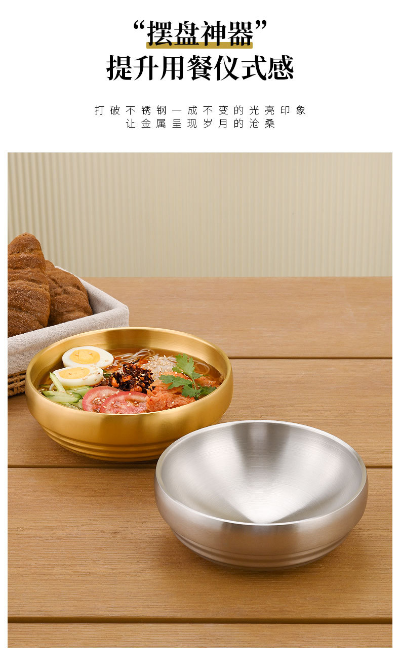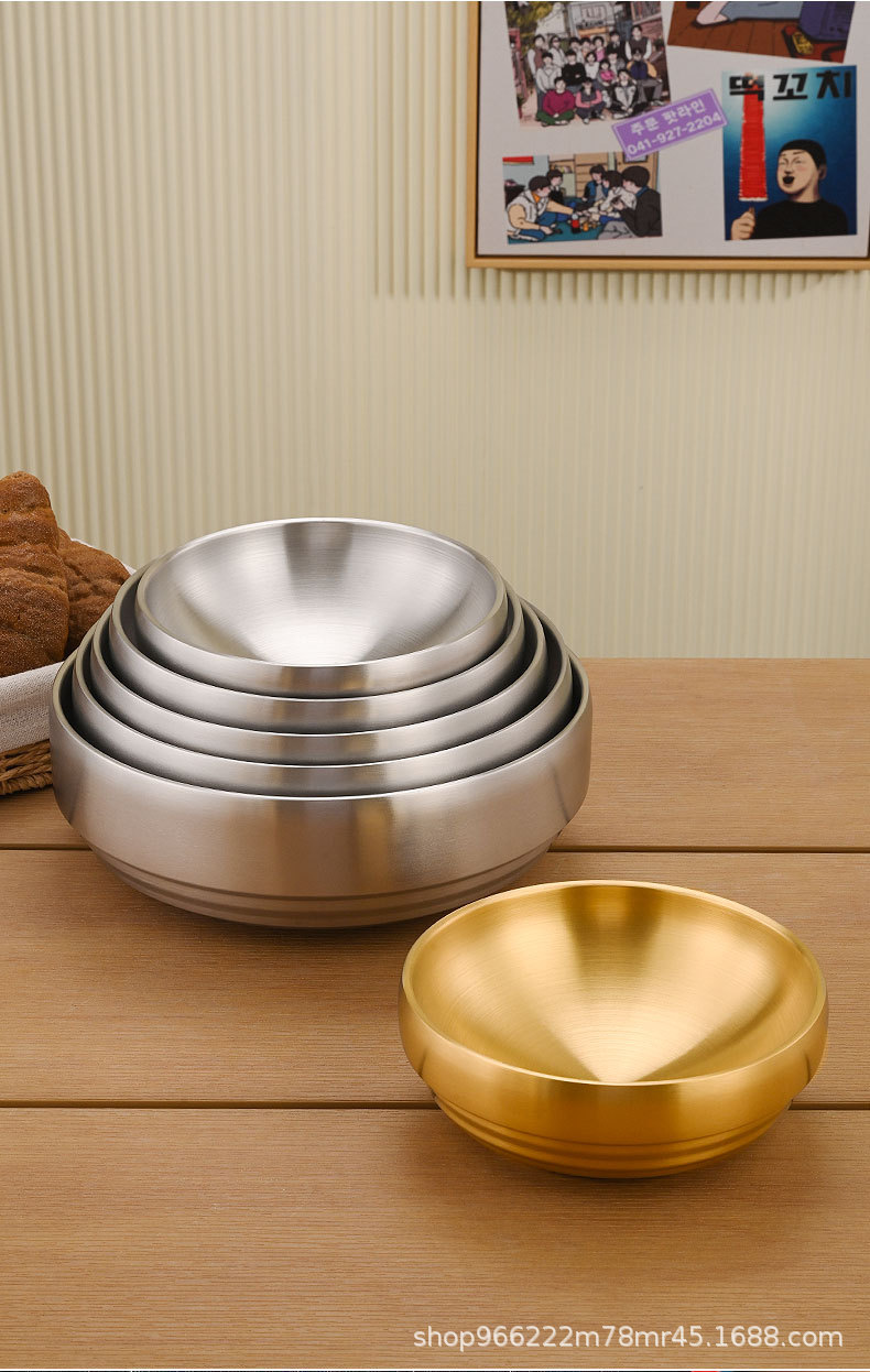 한국식 스텐 냉면그릇 2 중 데임 방지 국밥그릇 시판 대형 라면그릇 골든 커스텀 로고