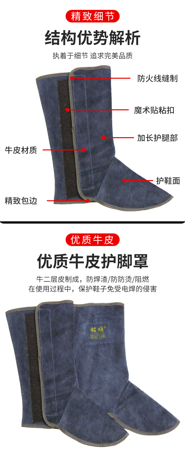 Mingshun cowhide 용접 발 덮개 362BK 난연 단열 고온 내성 안티-scald 용접기 발 덮개 다리 발 덮개