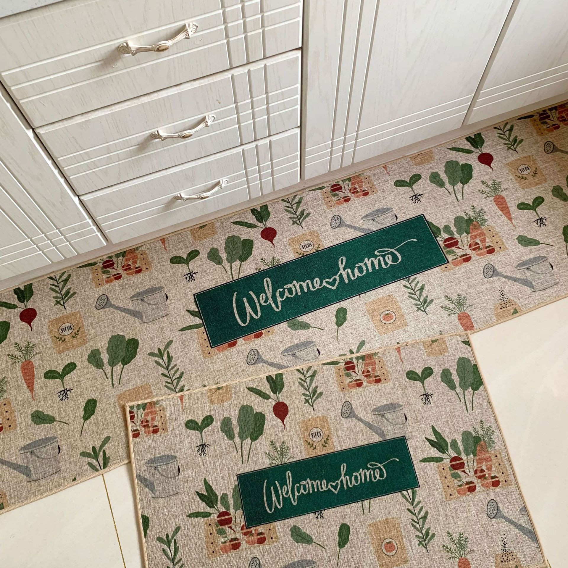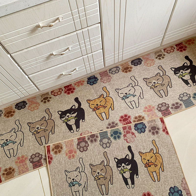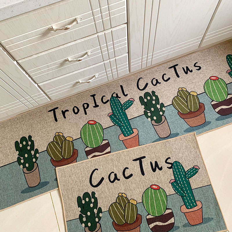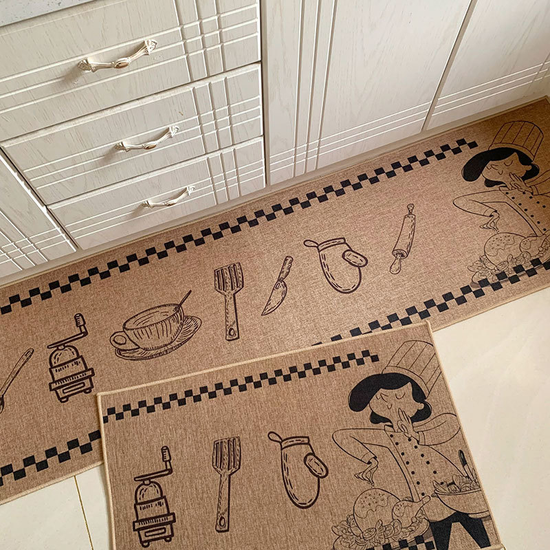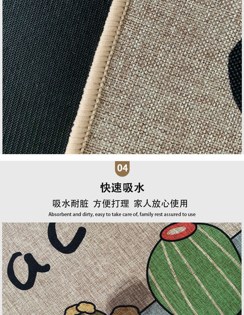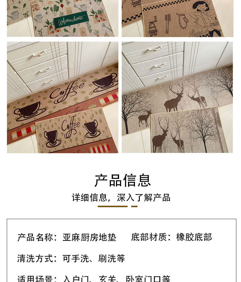 크로스 보더 세대 헤어 린넨 고무 주방 매트 새로운 세탁 린넨 짠 매트 만화 주방 조합 발 매트스토어 가기