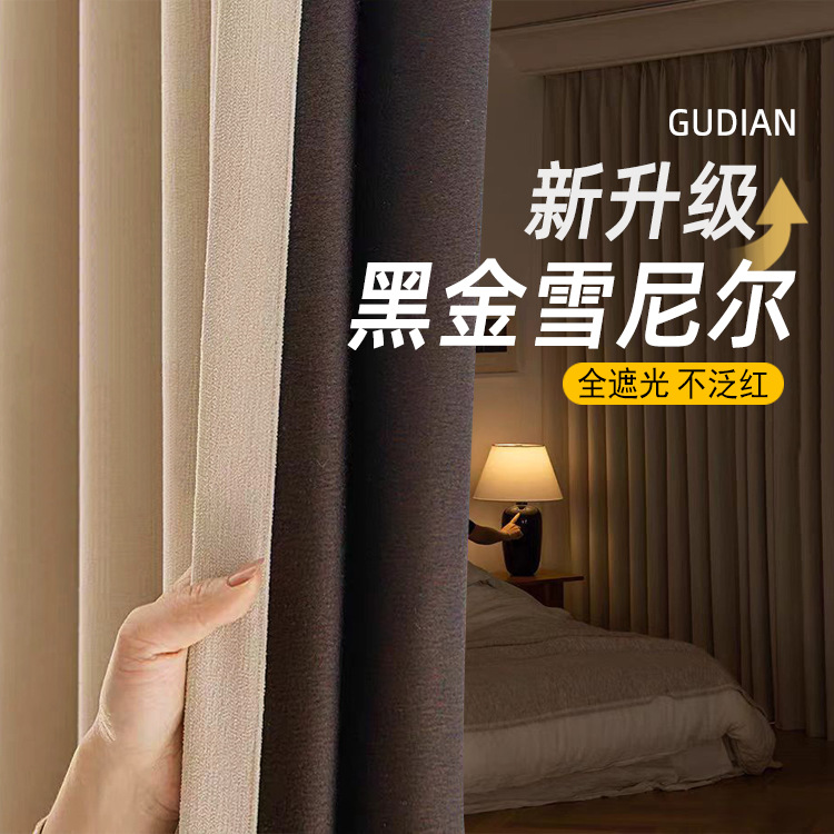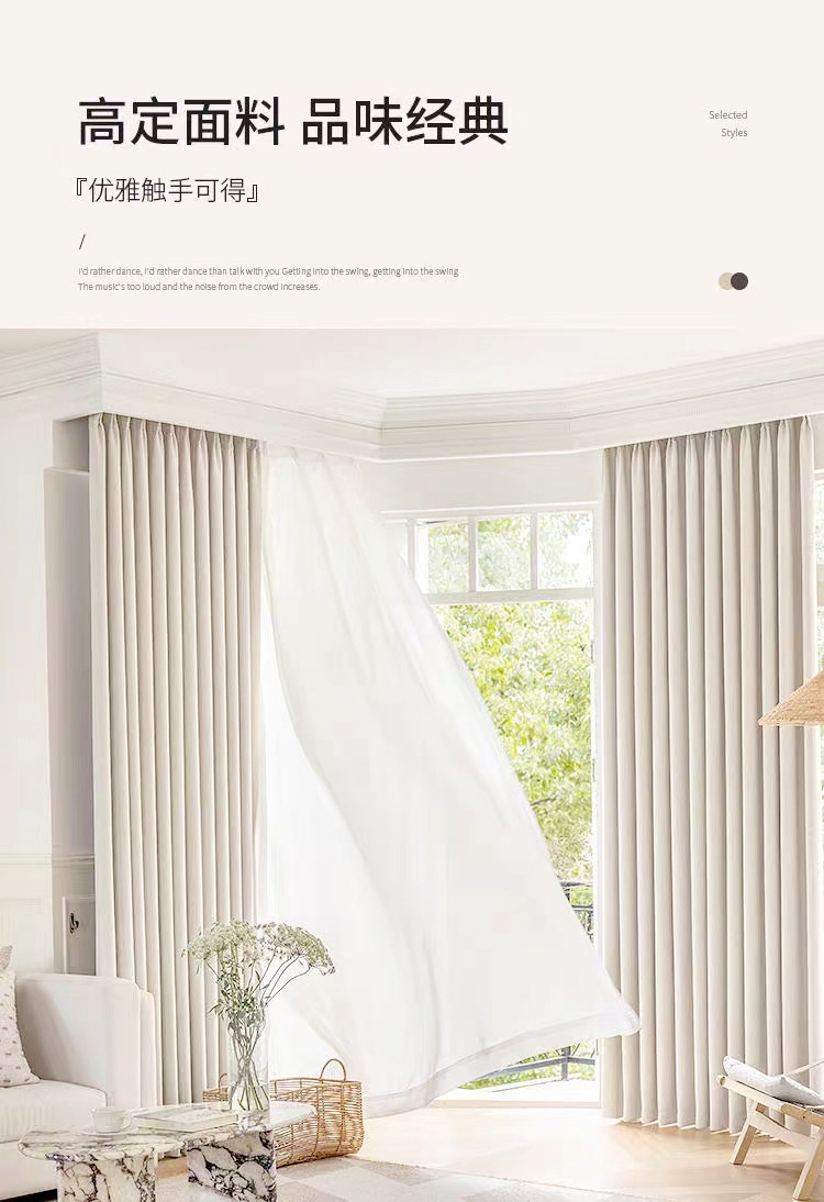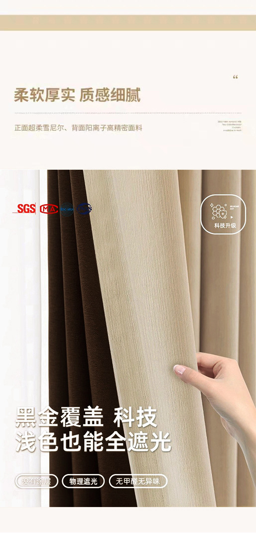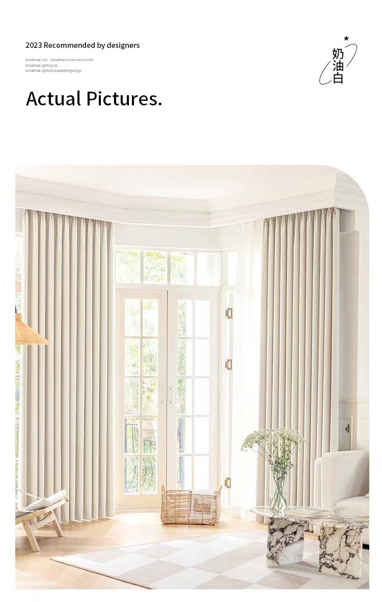 새로운 두꺼운 크림 벨벳 전체 정전 셔닐 커튼 거실과 침실을 위한 간단한 완성 크림 커튼
