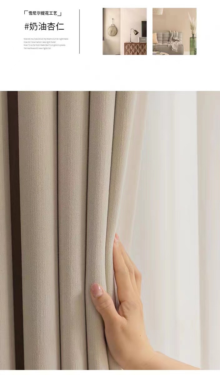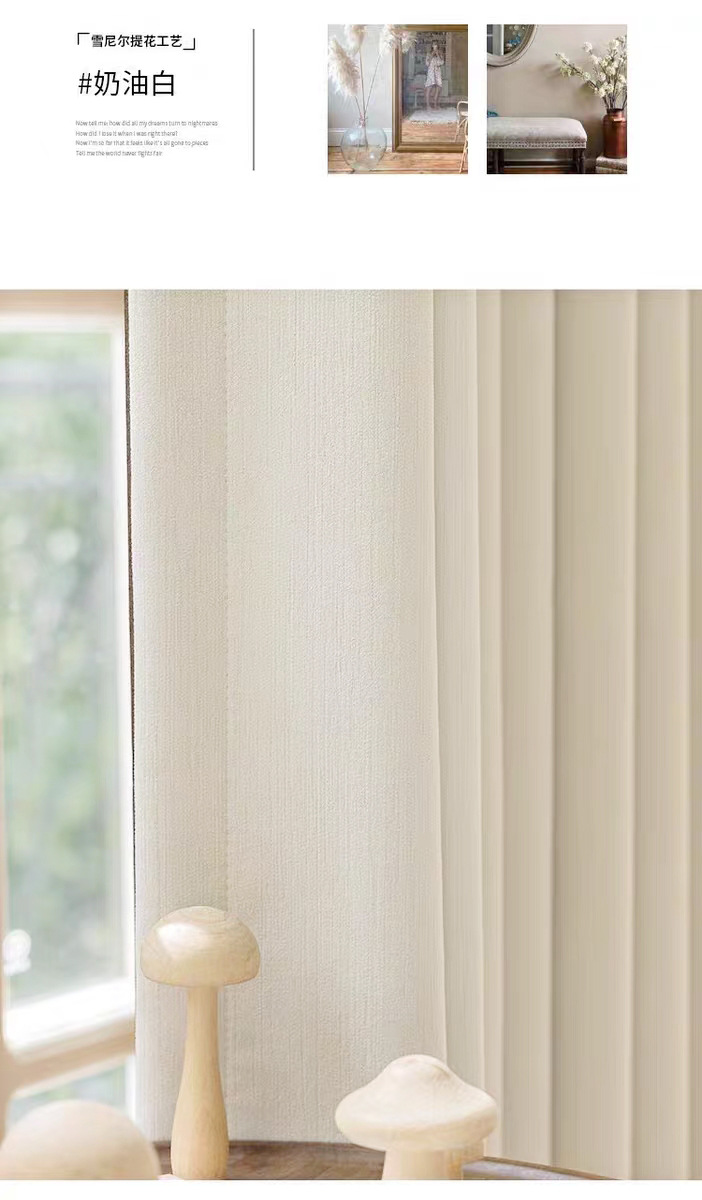 새로운 두꺼운 크림 벨벳 전체 정전 셔닐 커튼 거실과 침실을 위한 간단한 완성 크림 커튼스토어 가기