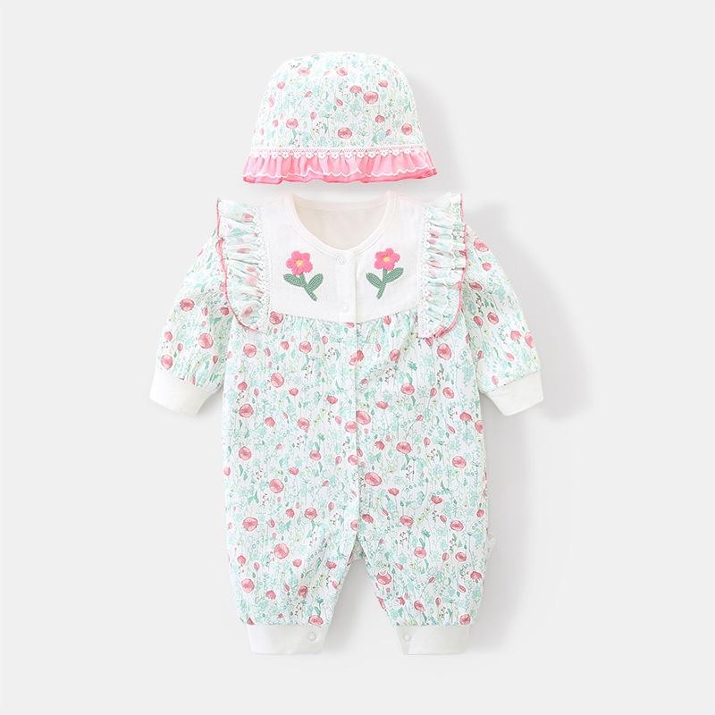 아이디어 아기 가을 면 점프 슈트 2023 새로운 신생아 아기 소녀 긴 소매 봄과 가을 후드 3223