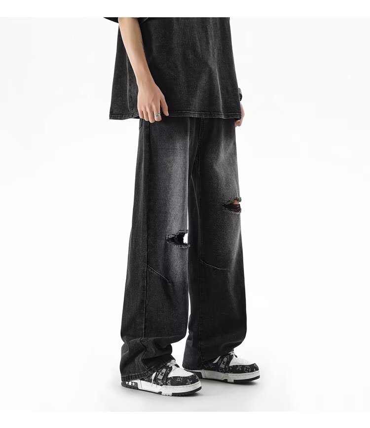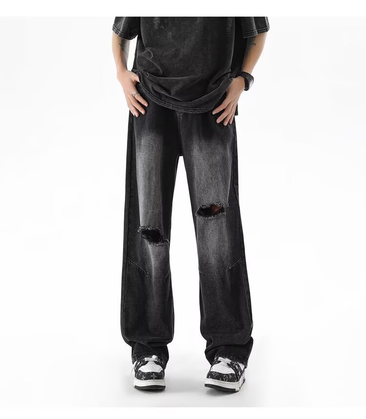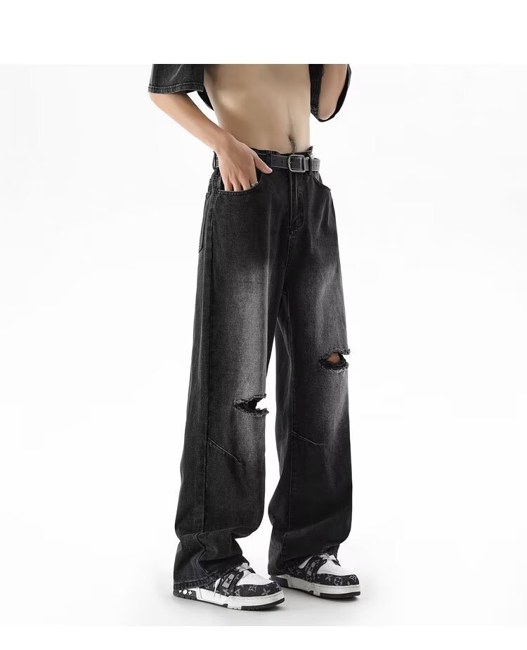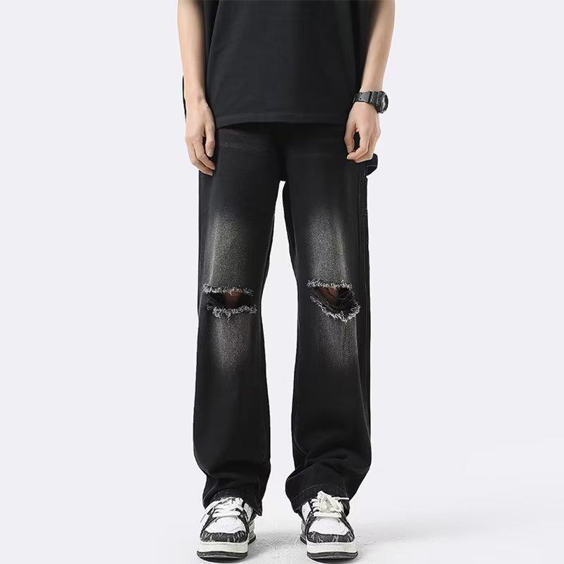 미국 복고풍 가을 새로운 찢어진 툴링 청바지 남자의 느슨한 스트레이트 드레이핑 와이드 레그 팬츠 하이 스트리트 트렌디 브랜드스토어 가기