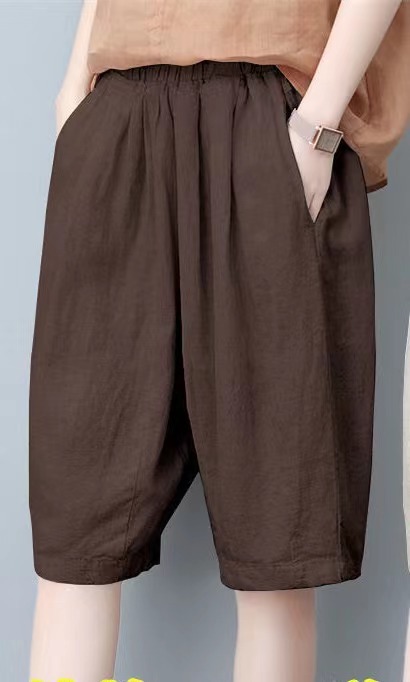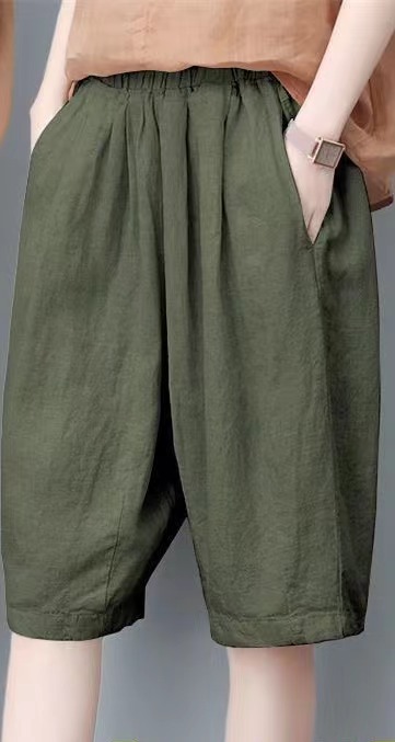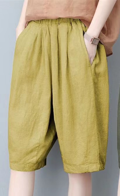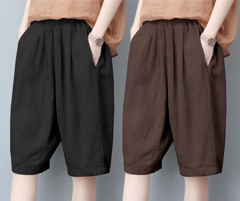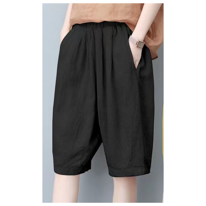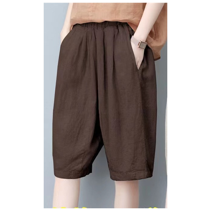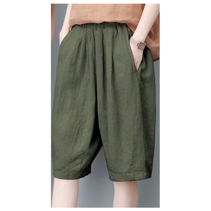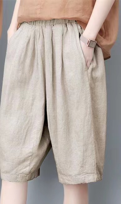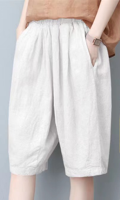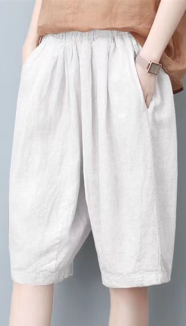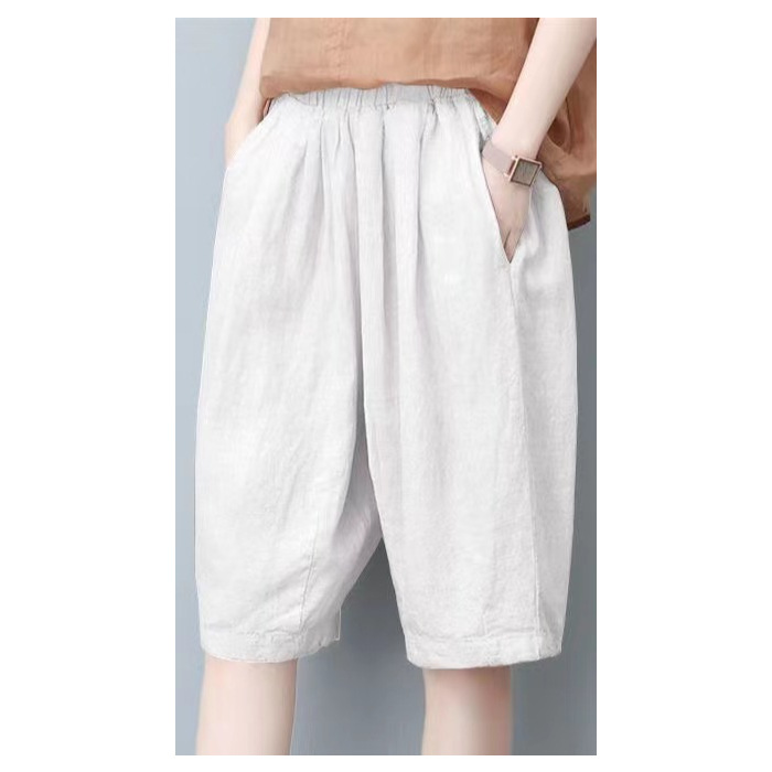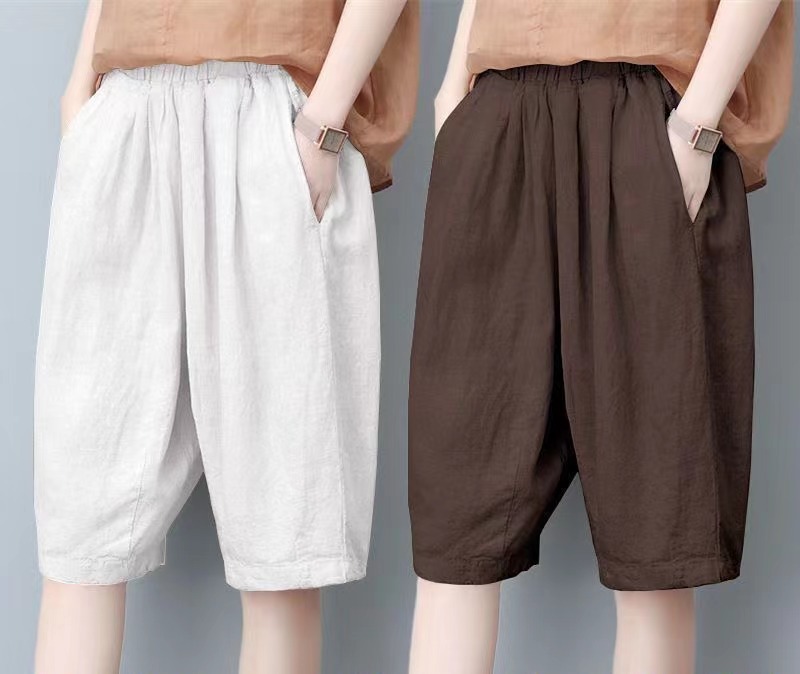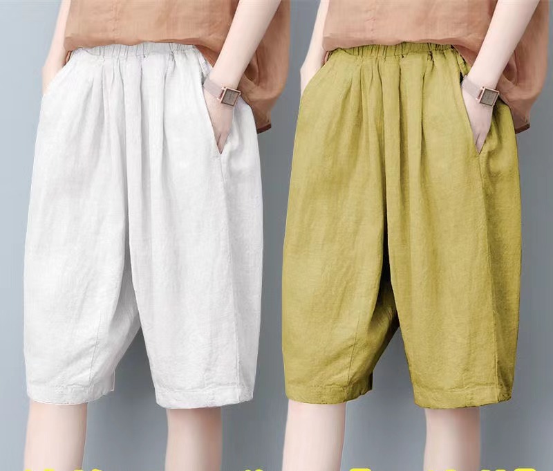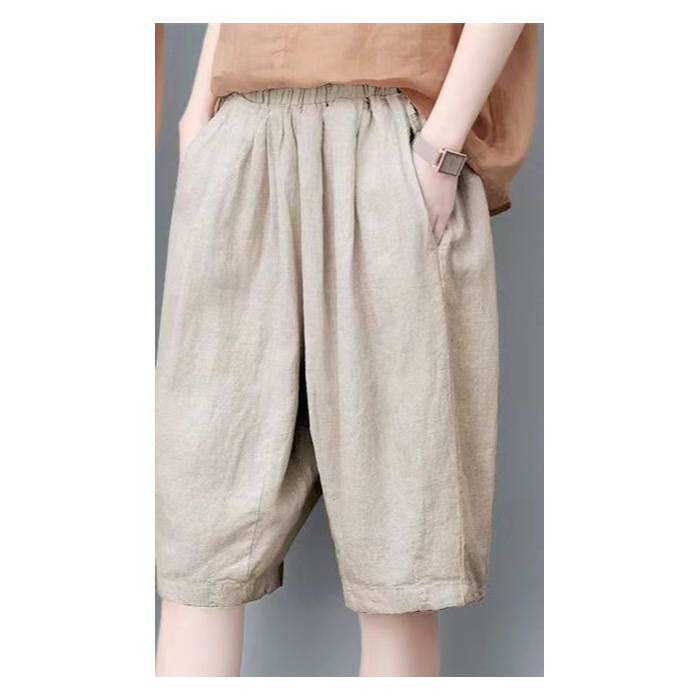 면과 린넨 5 점 바지 여성용 여름 새로운 하이 웨이스트 슬리밍 캐주얼 모든 매치 와이드 팬츠 여성용 스트레이트 반바지 할란 팬츠스토어 가기