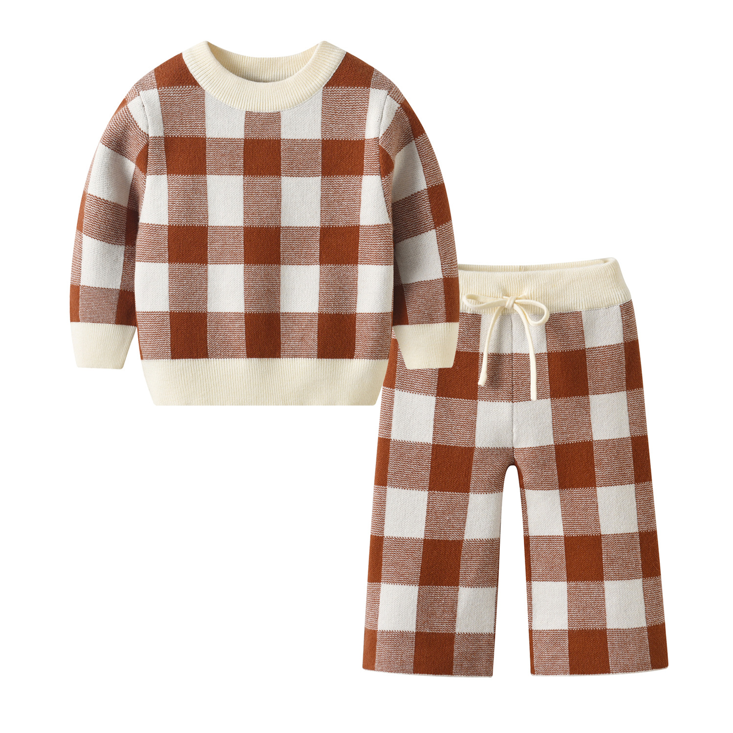 폭발 소녀 세트 가을과 겨울 새로운 격자 무늬 니트 스웨터 바지 따뜻한 스웨터 투피스 세트