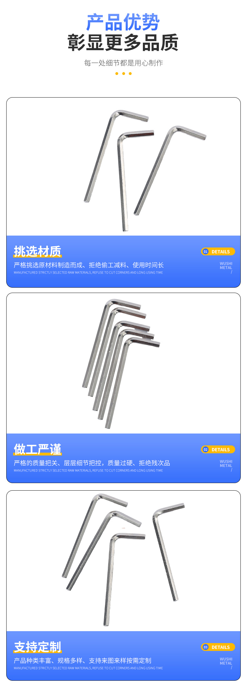 내부 육각 렌치 경화 니켈 도금 플랫 헤드 내부 육각 L 자형 렌치 6 각도 육각 키 미터법 및 인치 도매