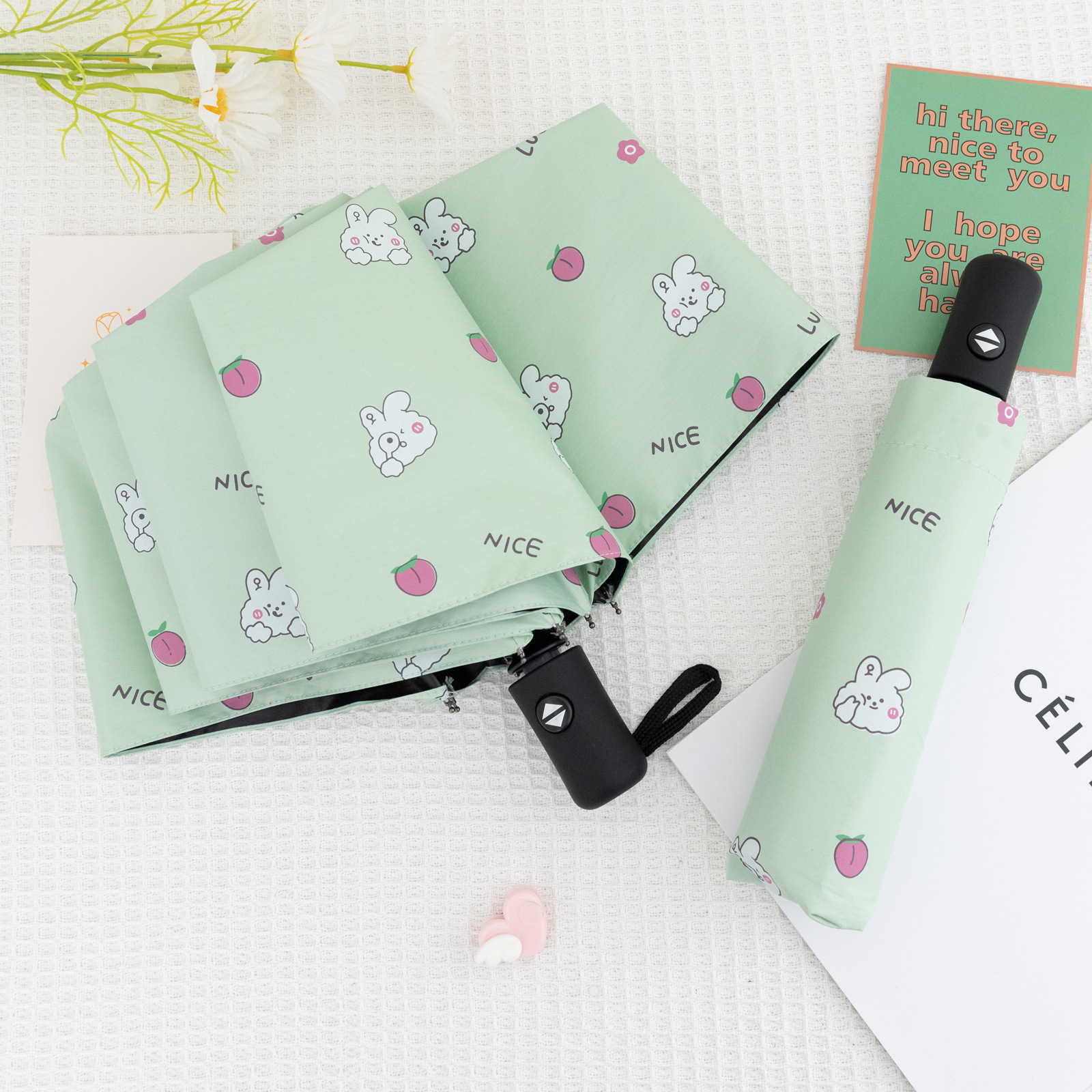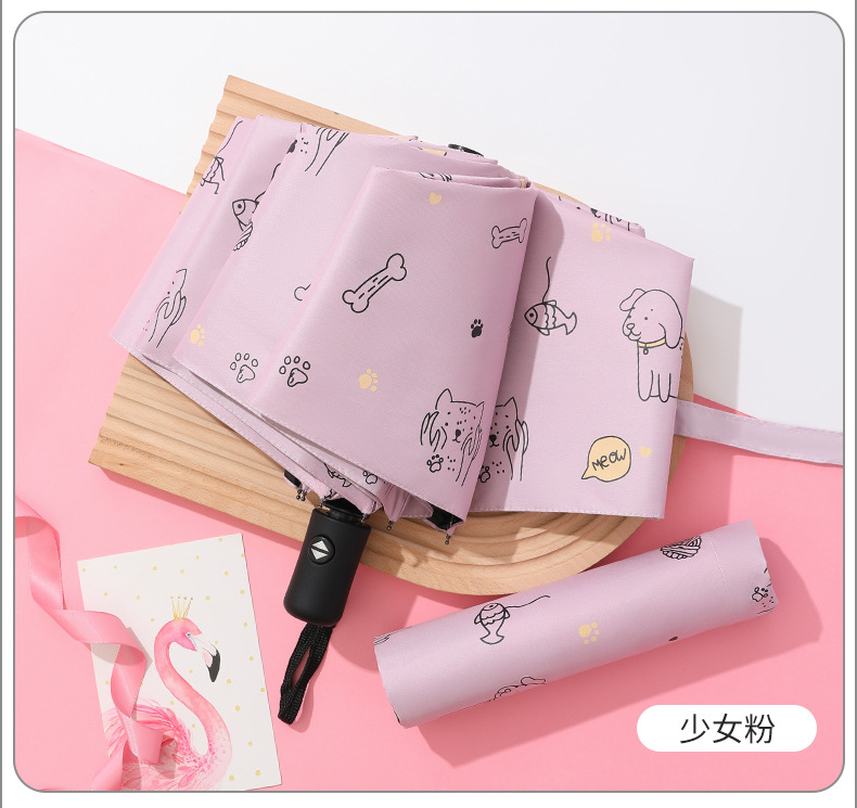 도매 완전 자동 3 접이식 로고 맞춤형 만화 우산 남성과 여성 선 스크린 차양 비 우산