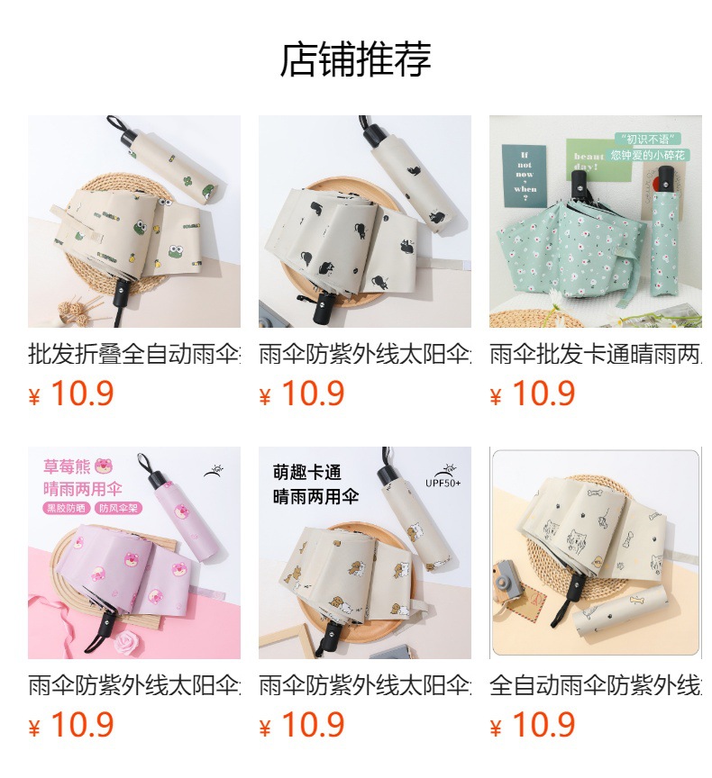 도매 완전 자동 3 접이식 로고 맞춤형 만화 우산 남성과 여성 선 스크린 차양 비 우산스토어 가기