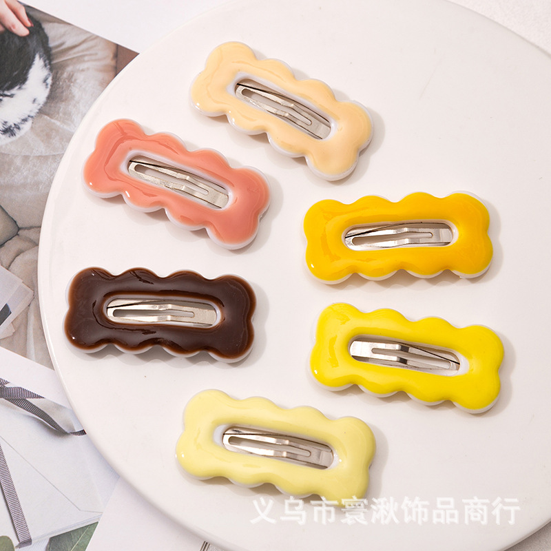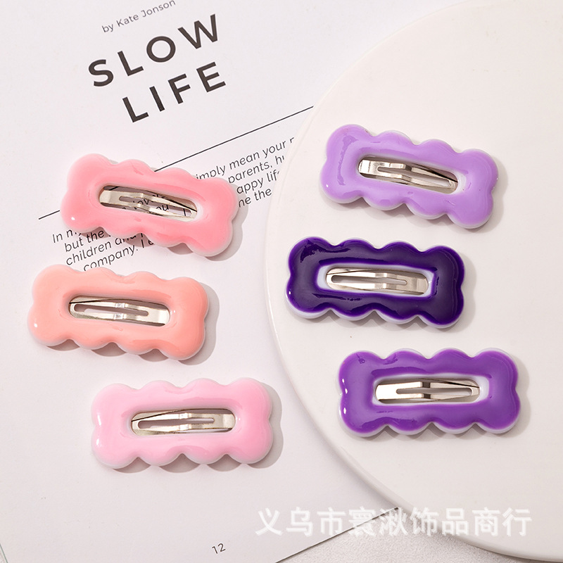 젤리 컬러 웨이브 BB 클립 소녀의 달콤한 웨이브 사이드 클립 떨어지는 기름 머리핀 뒤 머리 간단한 깨진 머리핀 모자스토어 가기
