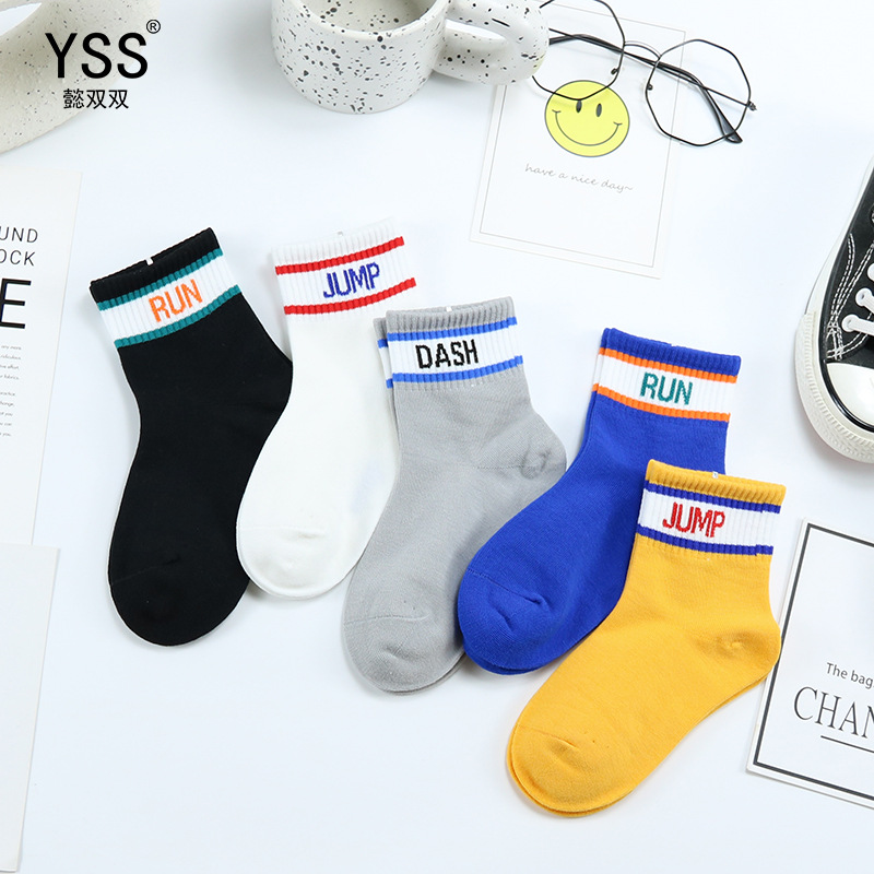 어린이 양말 이순신 쌍 가을과 겨울 새로운 한국식 편지 중간 길이 양말 빗질 면 소년 스포츠 양말 트렌디 브랜드 어린이 양말
