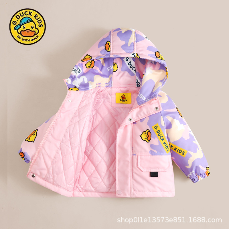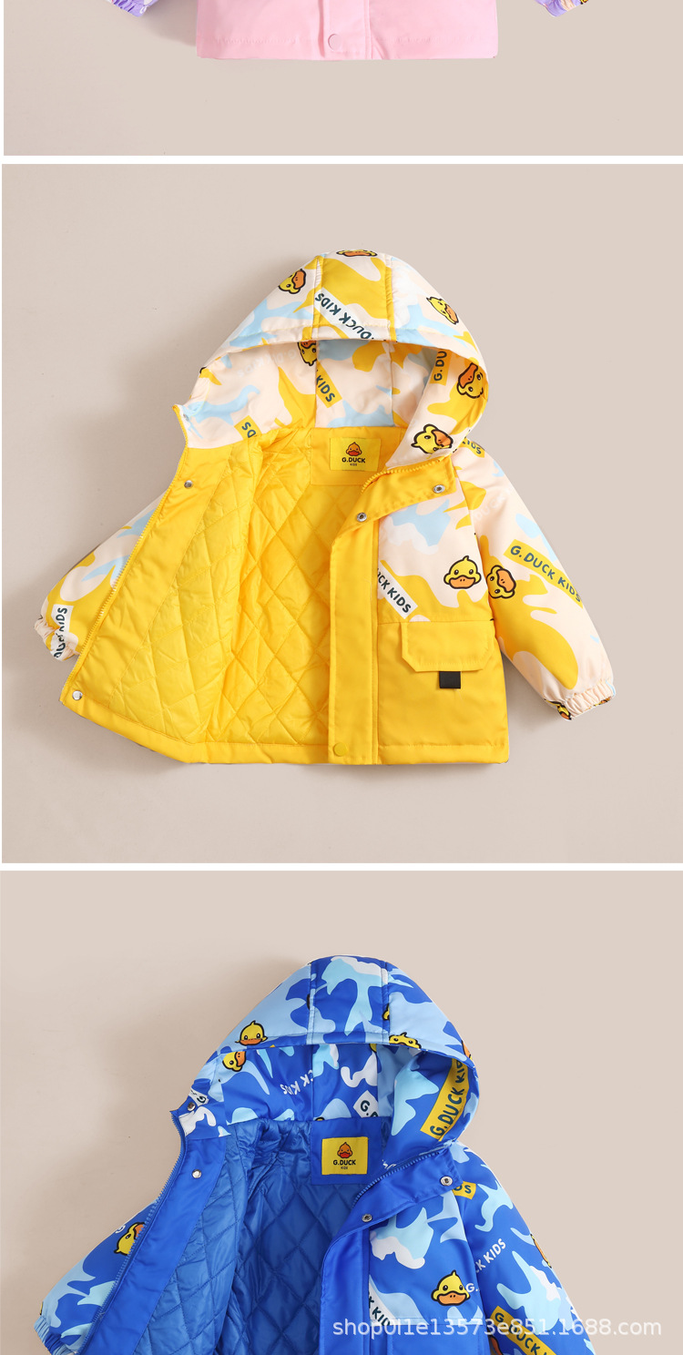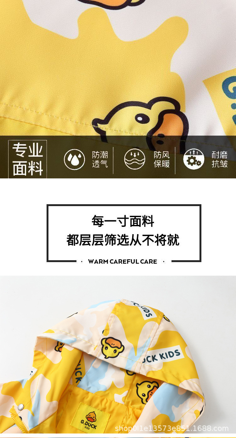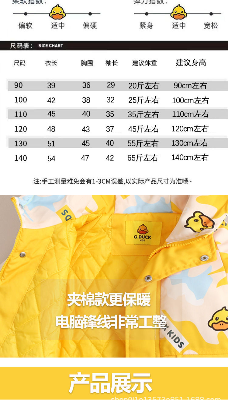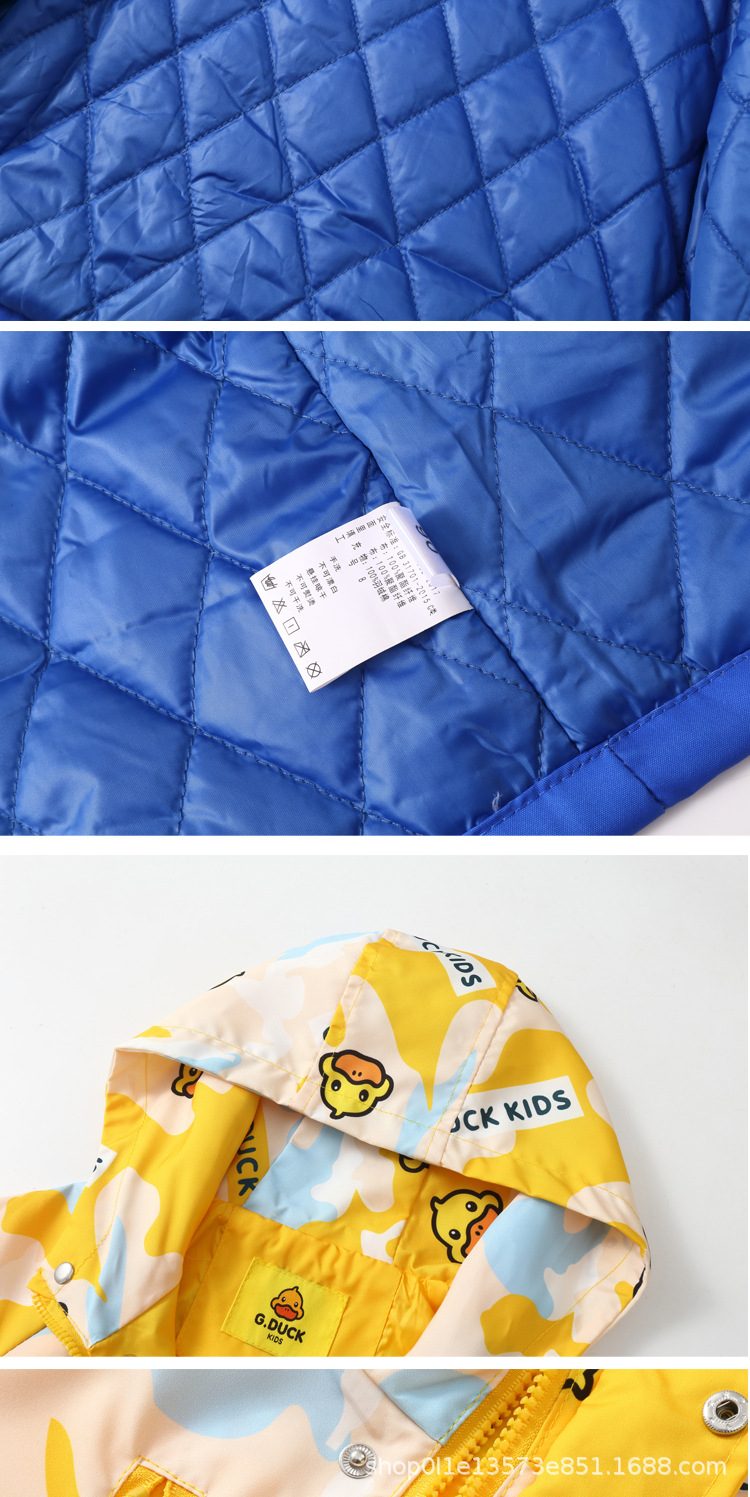 G.DUCK 작은 노란색 DUCK 아동 자켓 코튼 패딩 남아 및 여아 아기 코트 남성과 여성을위한 짧은 새로운 아동복스토어 가기