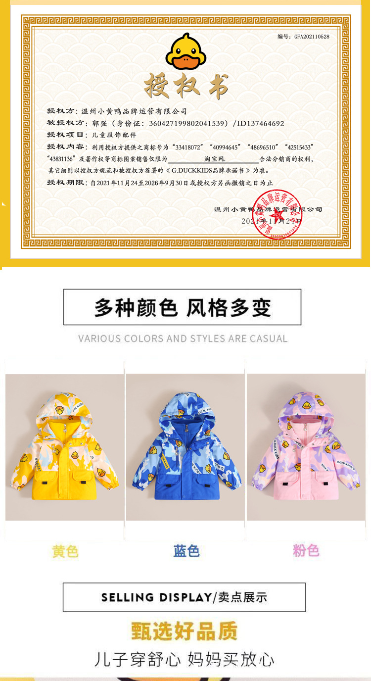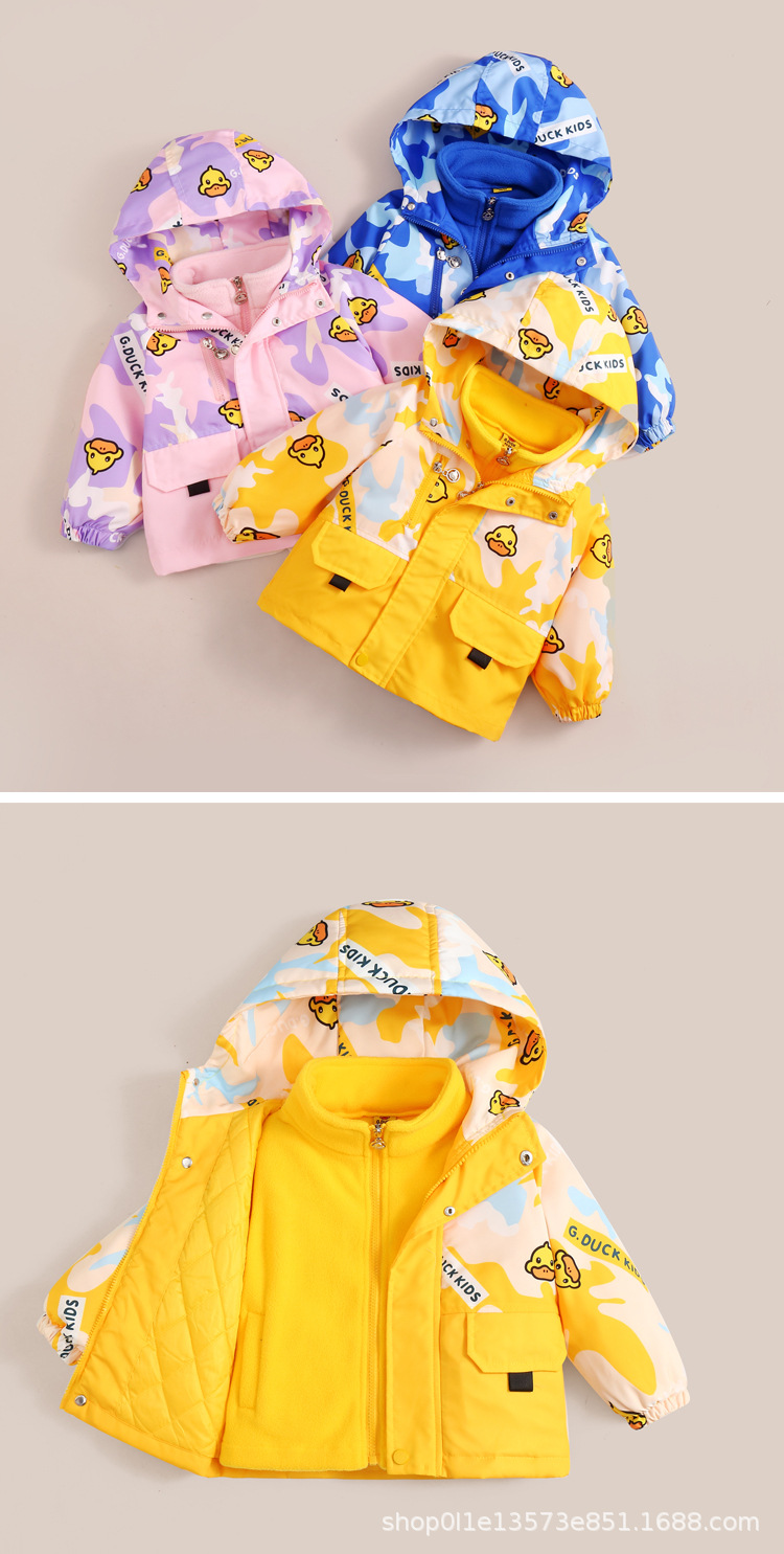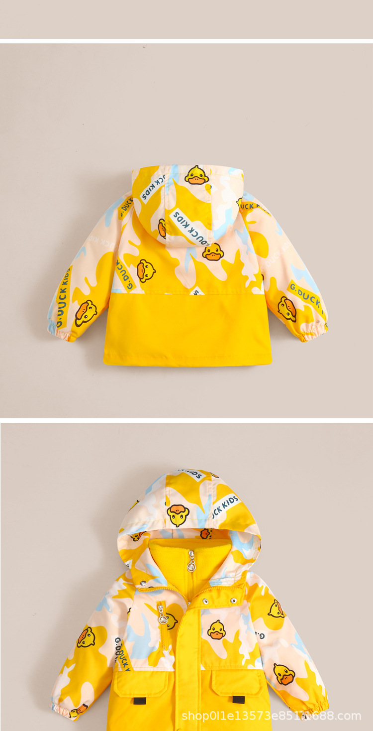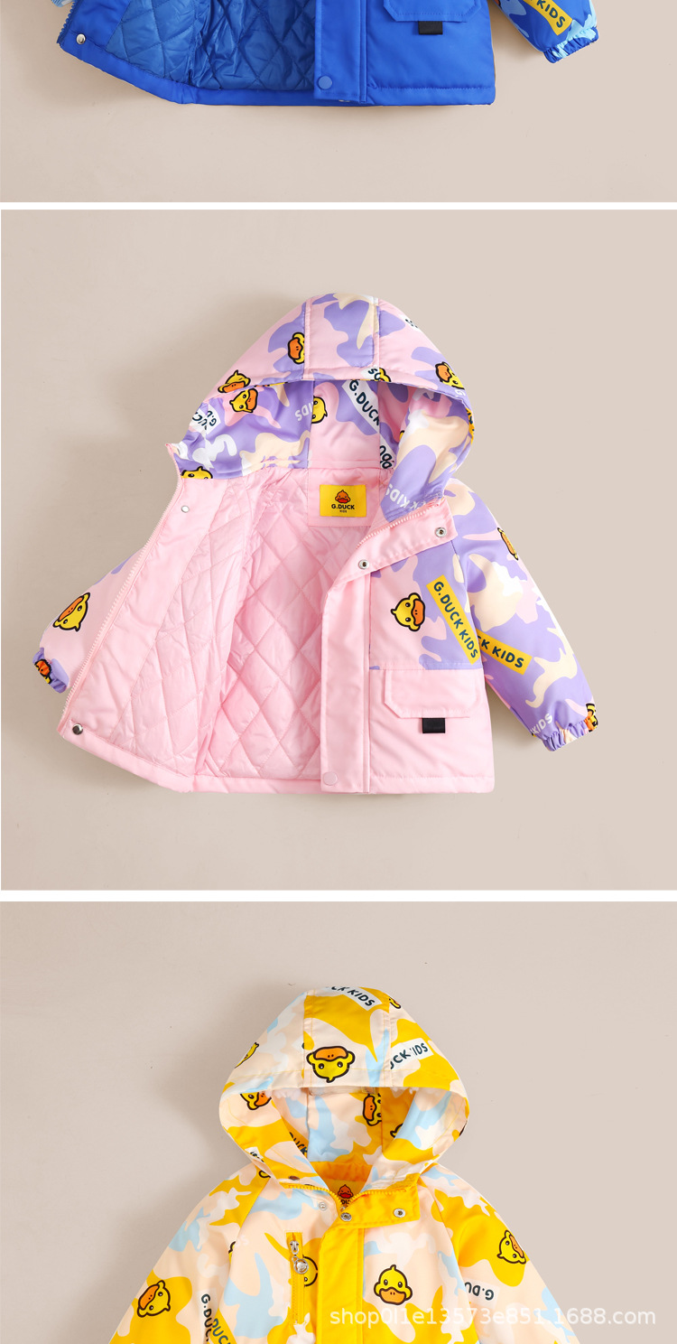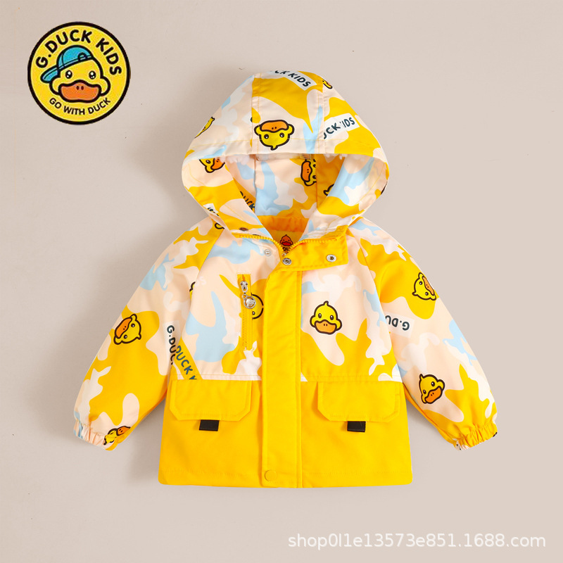 G.DUCK 작은 노란색 DUCK 아동 자켓 코튼 패딩 남아 및 여아 아기 코트 남성과 여성을위한 짧은 새로운 아동복스토어 가기