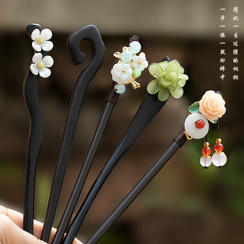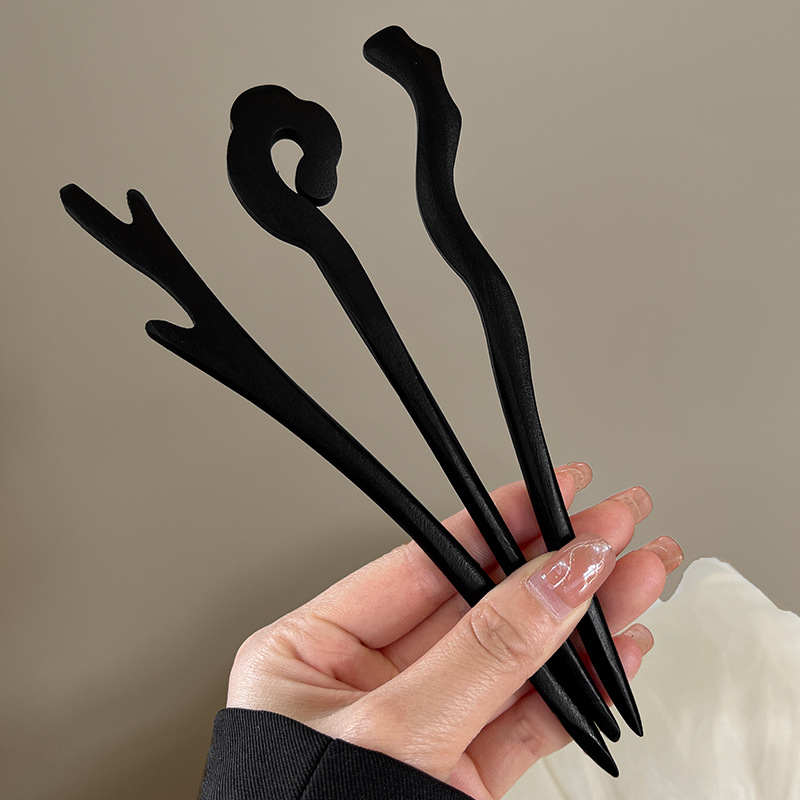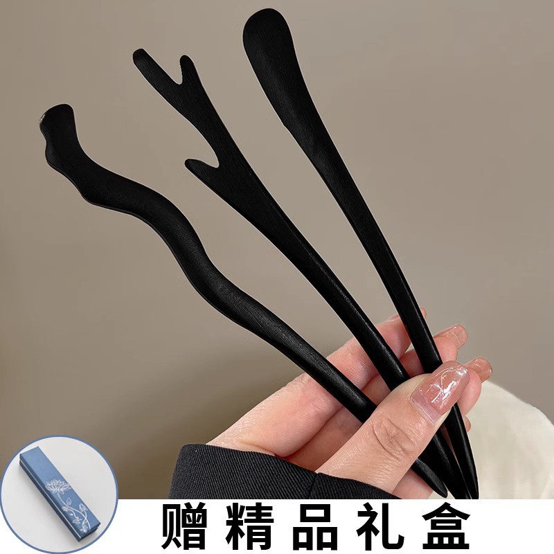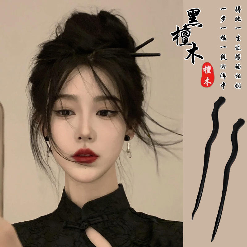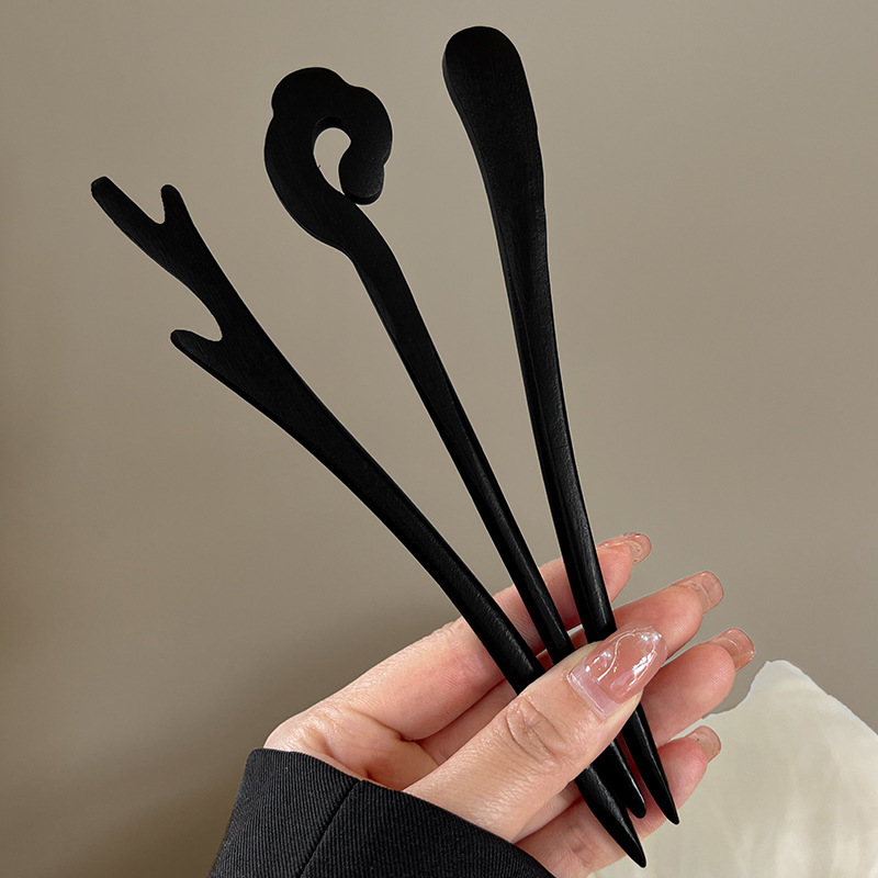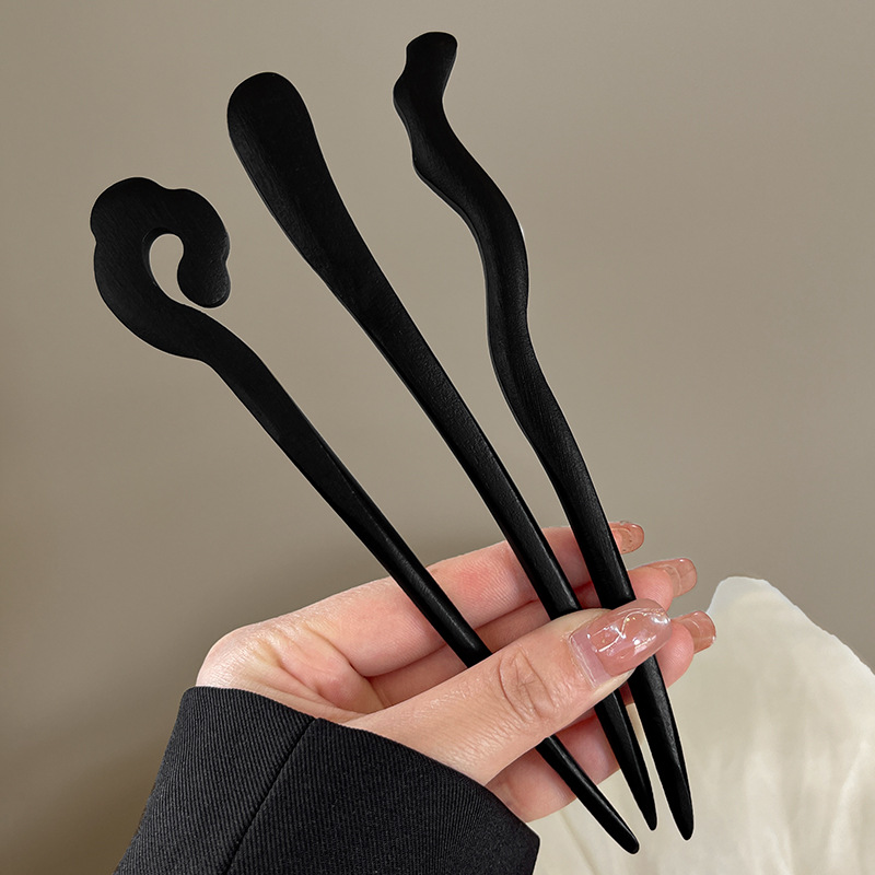 고급 나무 머리 머리핀 새로운 중국식 나무 머리핀 골동품 백단향 머리핀 여성용 간단한 현대 머리 머리핀