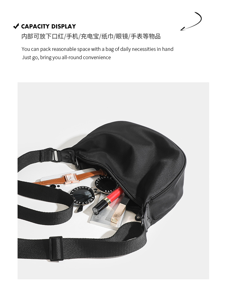 2023 캐주얼 트렌디 크로스 바디 백 심플 솔리드 컬러 대용량 와이드 숄더 스트랩 싱글 숄더 백 옥스포드 천 초승달 가방 여성 가방스토어 가기
