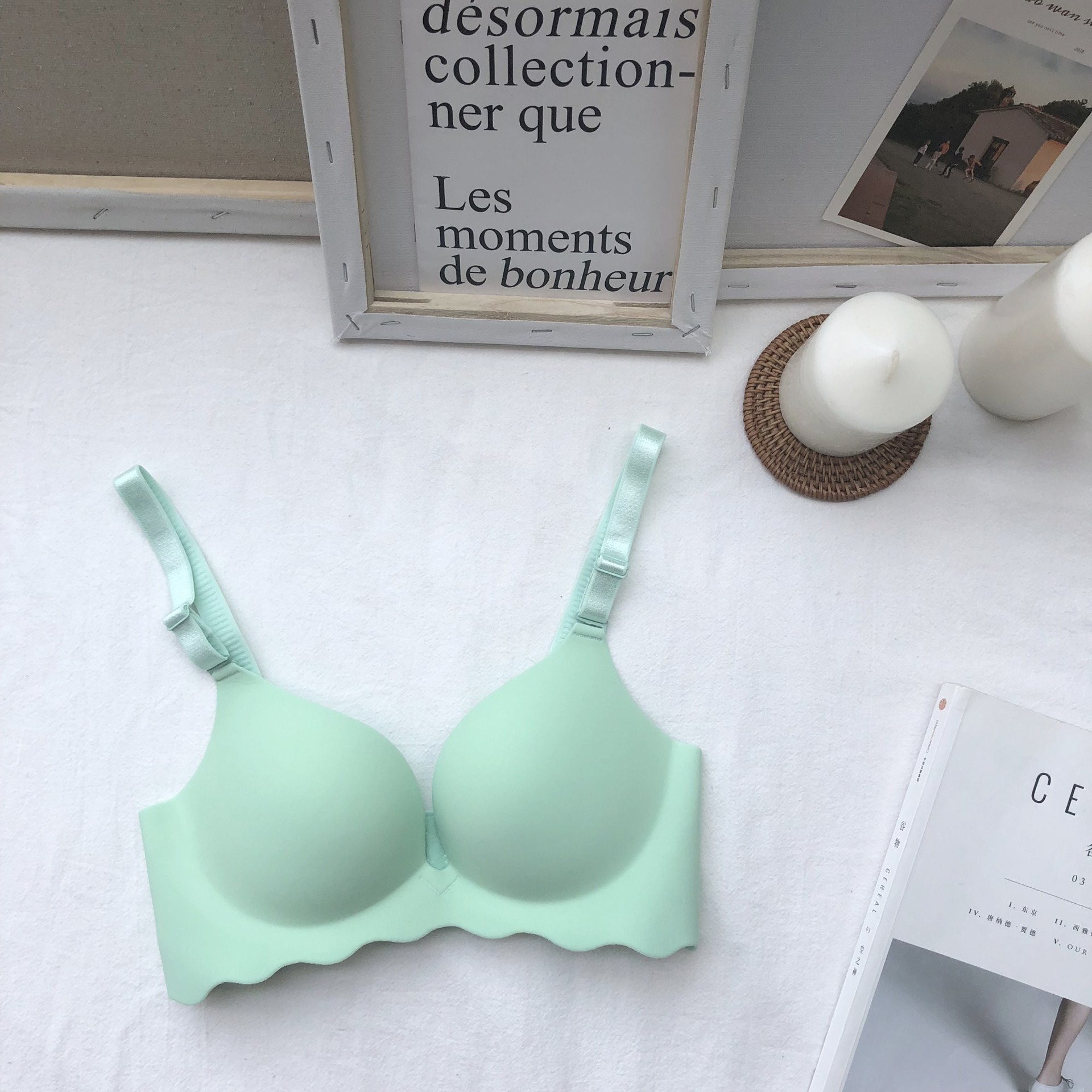 동남아시아 마카롱 무테 원피스 심리스 브라 섹시한 작은 가슴 개더링 브라 두꺼운 얇은 속옷스토어 가기