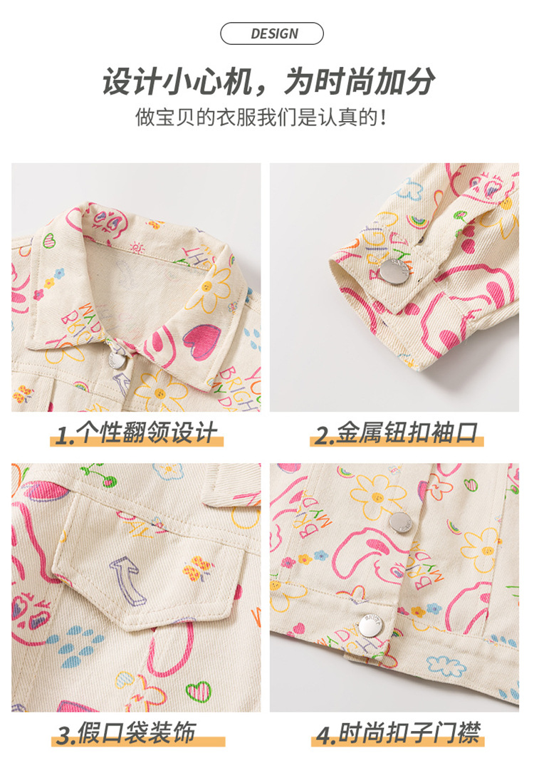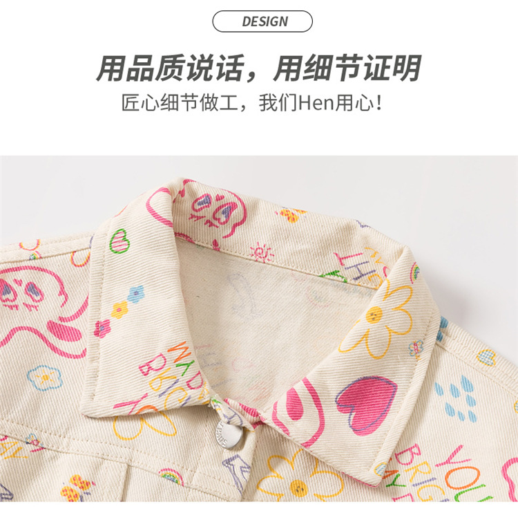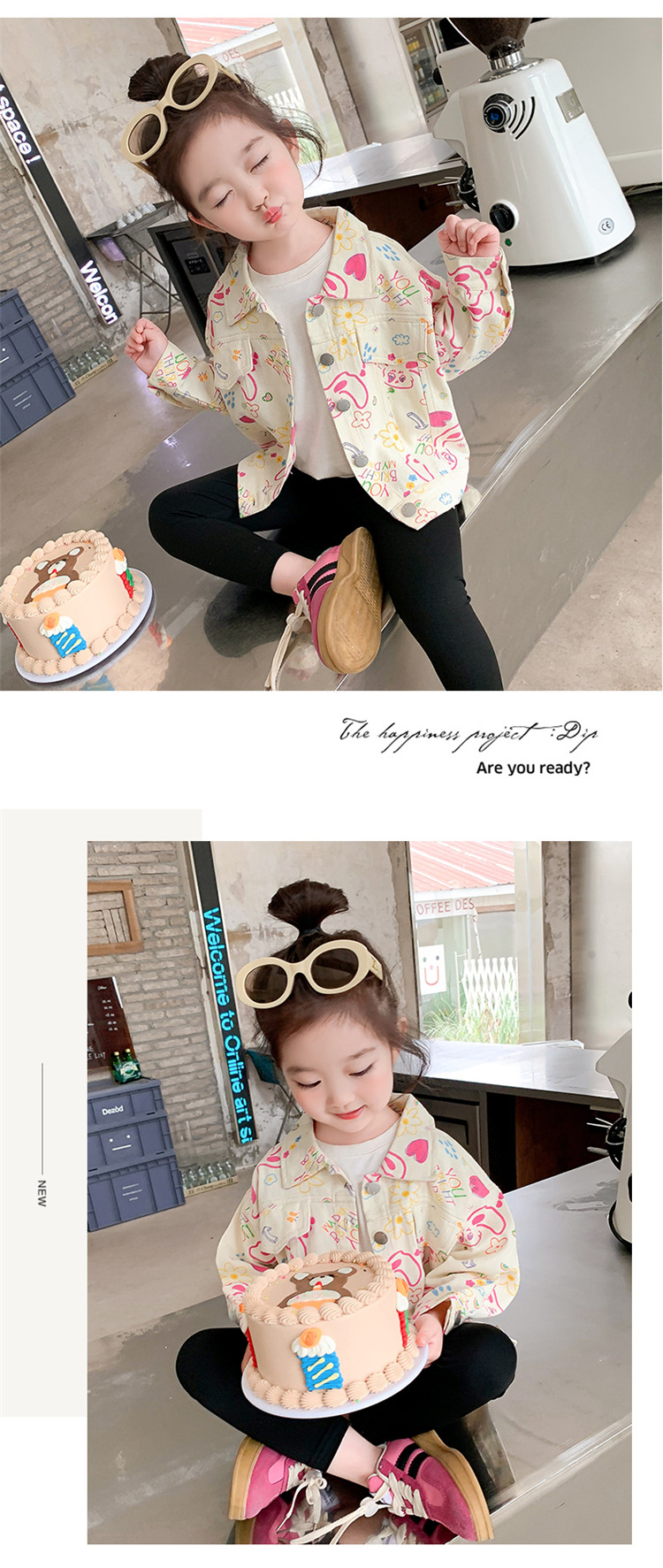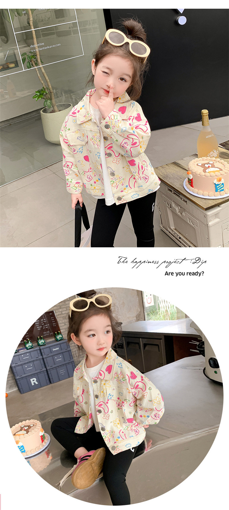 소녀의 만화 데님 코트 봄과 가을 2023 새로운 스타일 유행 어린이 가을 탑 아기 소녀의 재킷