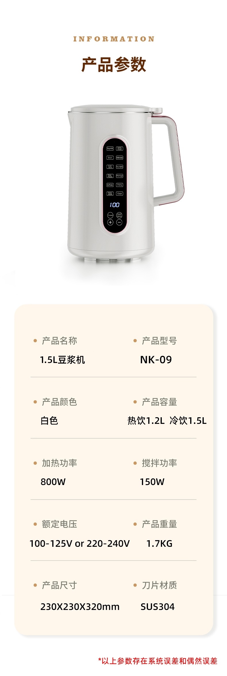 1500 ml 깨진 벽 두유 기계 가정용 다기능 예약 난방 대용량 조리기 110 볼트 완전 자동스토어 가기