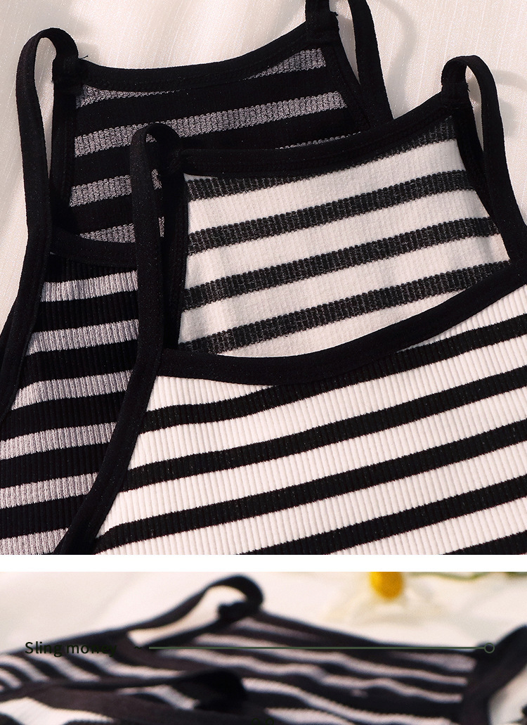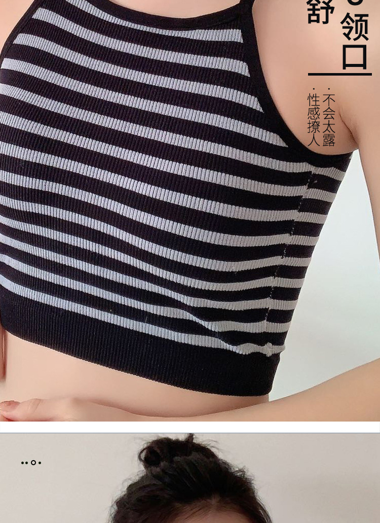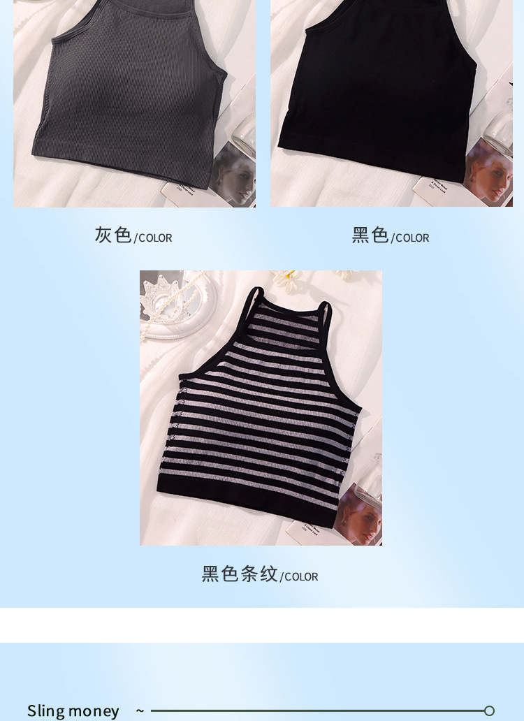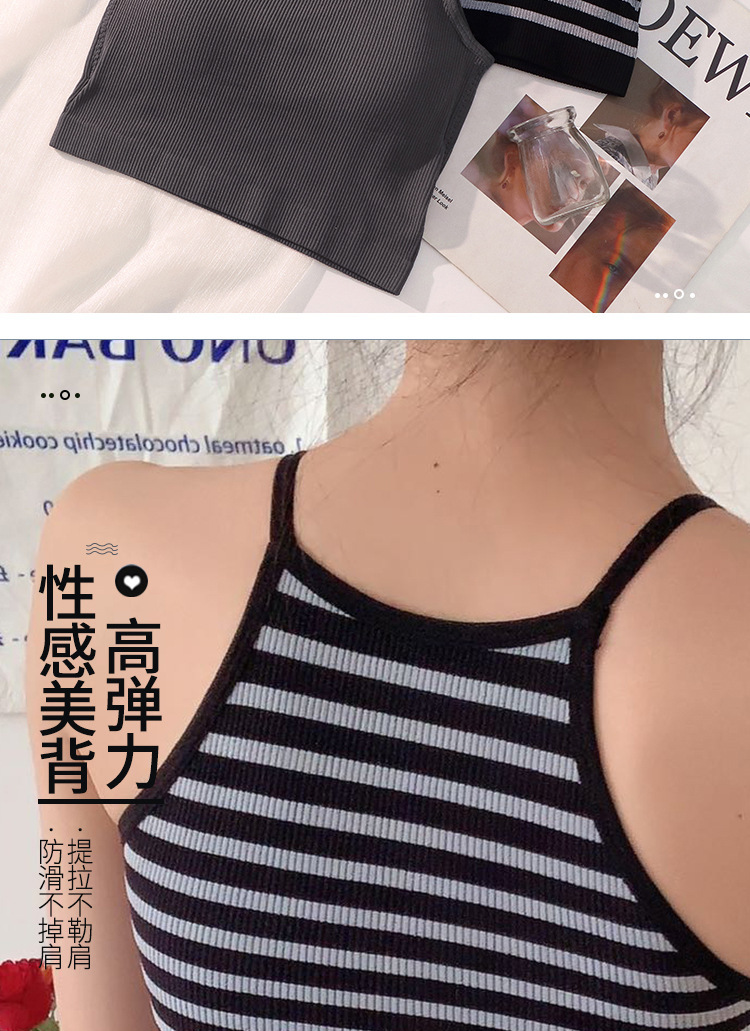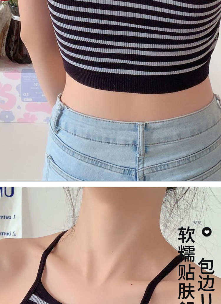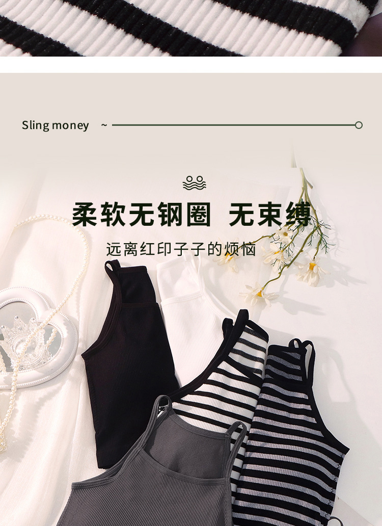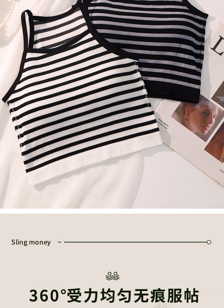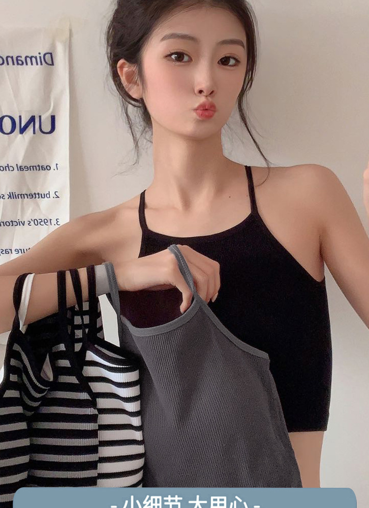2023 이른 봄 새로운 스파이스 걸 얇은 어깨 끈 여성용 조끼 가슴 패드 내부 착용 아름다운 등 겉옷 짧은 줄무늬베이스 셔츠 착용스토어 가기
