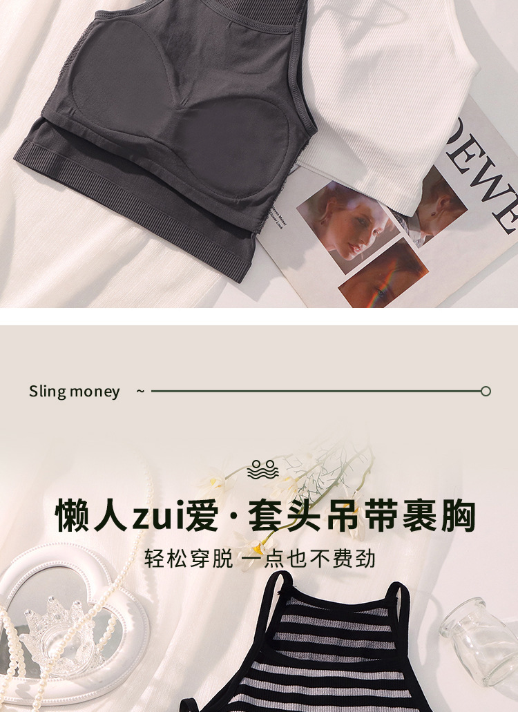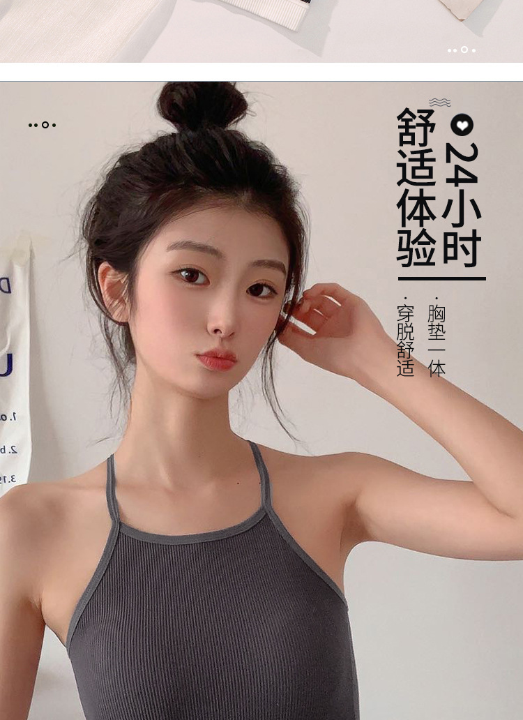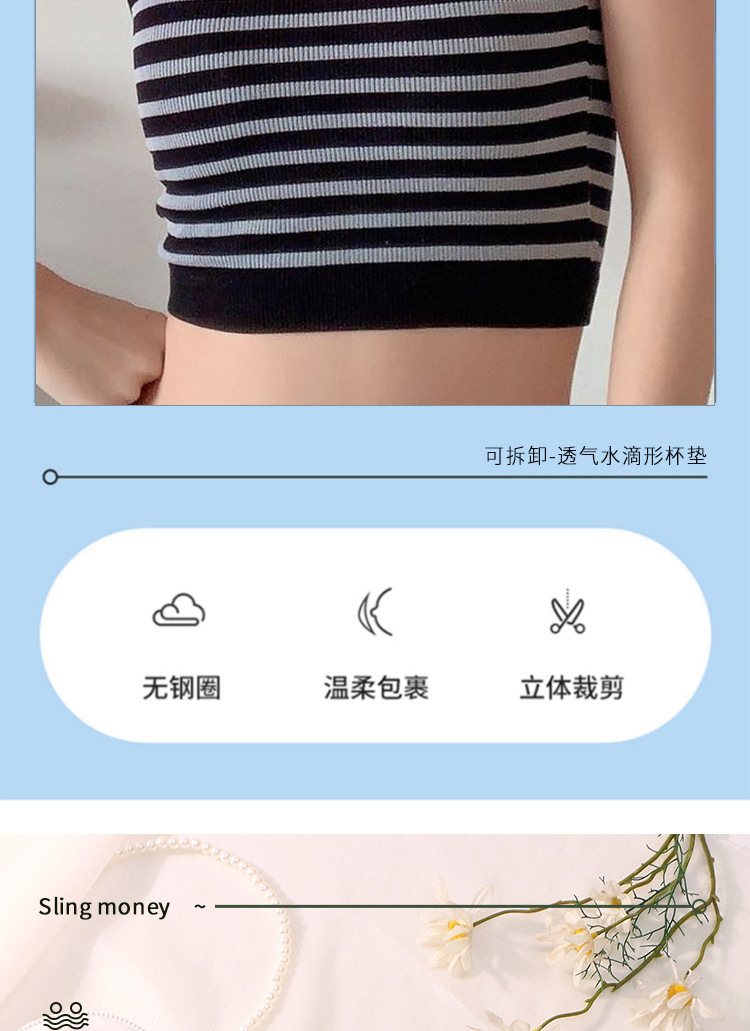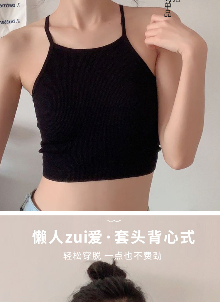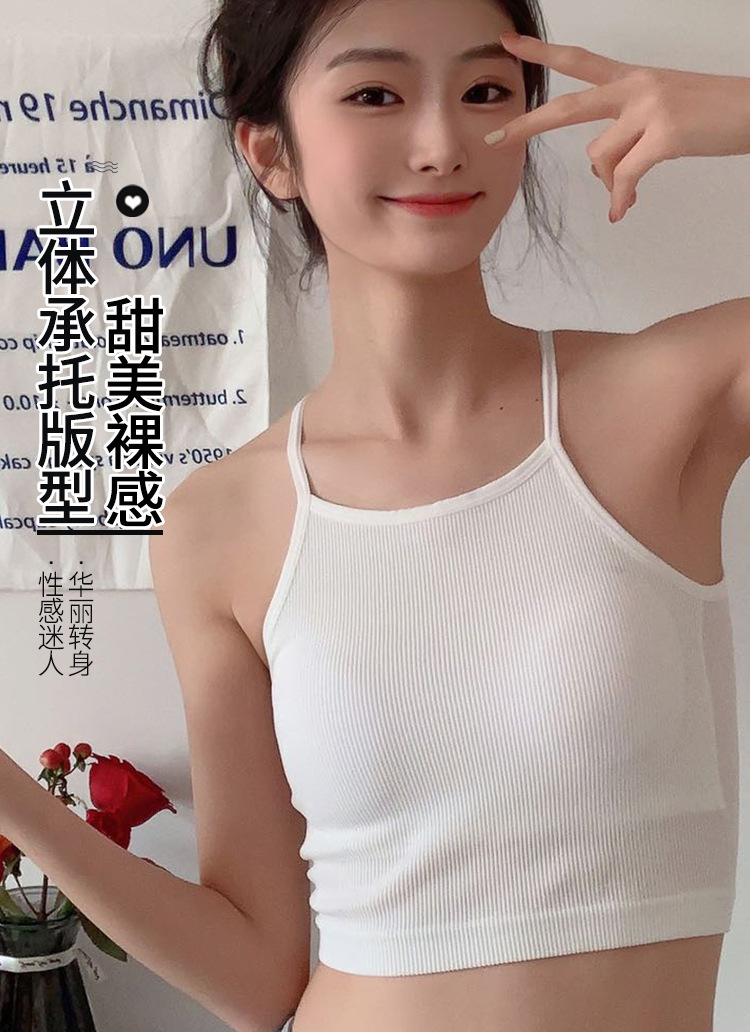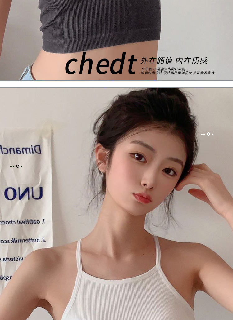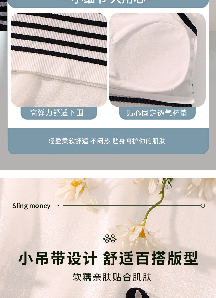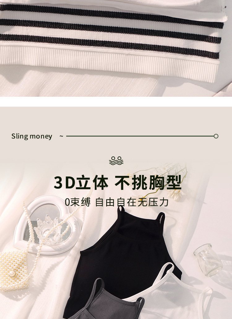 2023 이른 봄 새로운 스파이스 걸 얇은 어깨 끈 여성용 조끼 가슴 패드 내부 착용 아름다운 등 겉옷 짧은 줄무늬베이스 셔츠 착용스토어 가기
