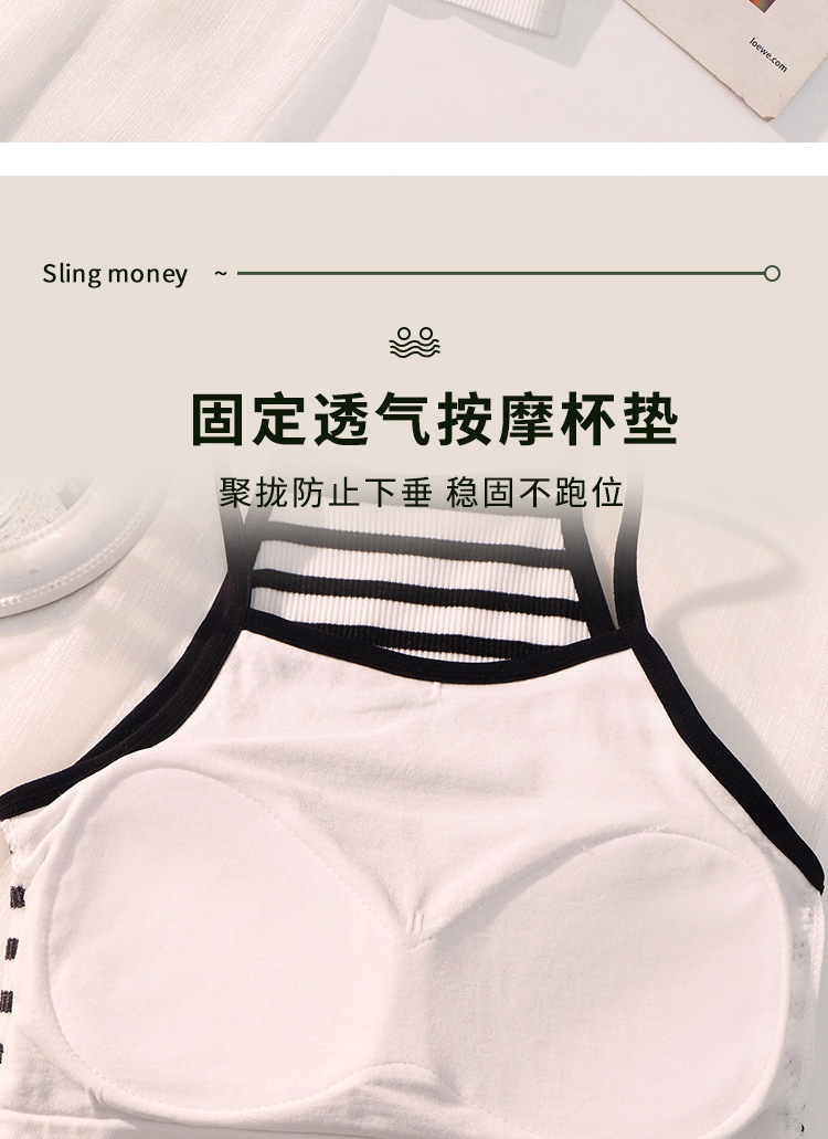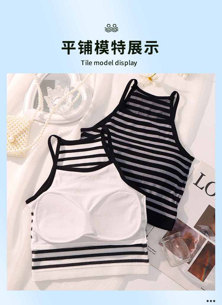 2023 이른 봄 새로운 스파이스 걸 얇은 어깨 끈 여성용 조끼 가슴 패드 내부 착용 아름다운 등 겉옷 짧은 줄무늬베이스 셔츠 착용