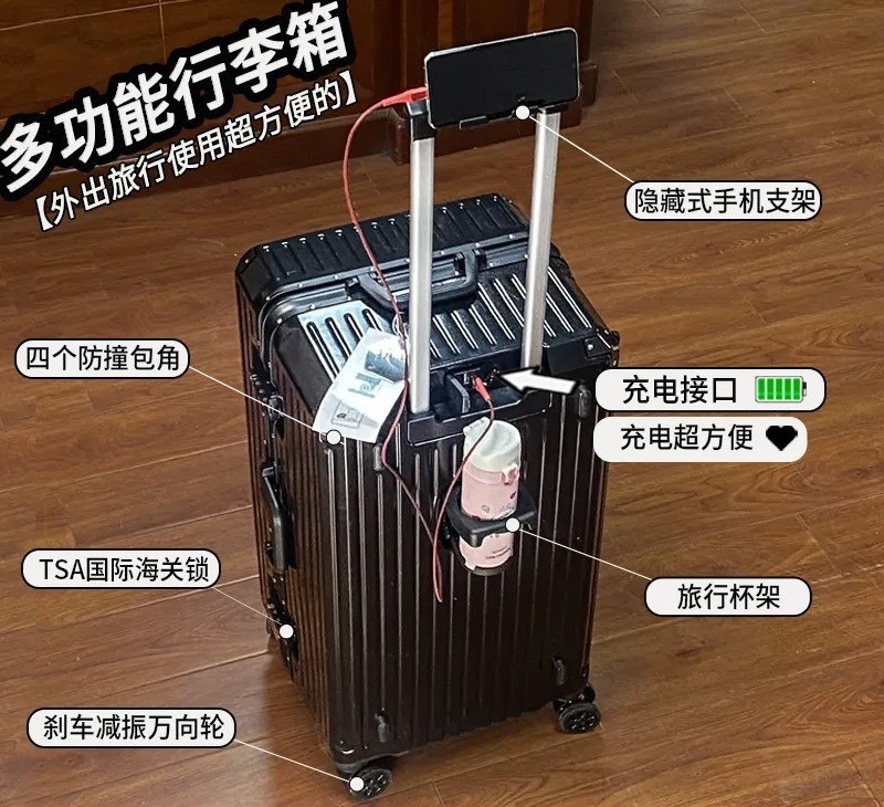 Sanqi 알루미늄 프레임 수하물 케이스 여성의 대용량 건조 및 습식 분리 트롤리 케이스 남성 브레이크 휠 정장 암호 상자스토어 가기