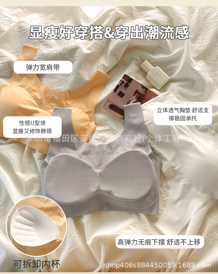 원활한 아이스 실크 속옷 소녀의 마음의 평화 생성 강철 반지 없음 브래지어 수집 학생 가슴 드러나는 작은 조끼 여름 얇은스토어 가기
