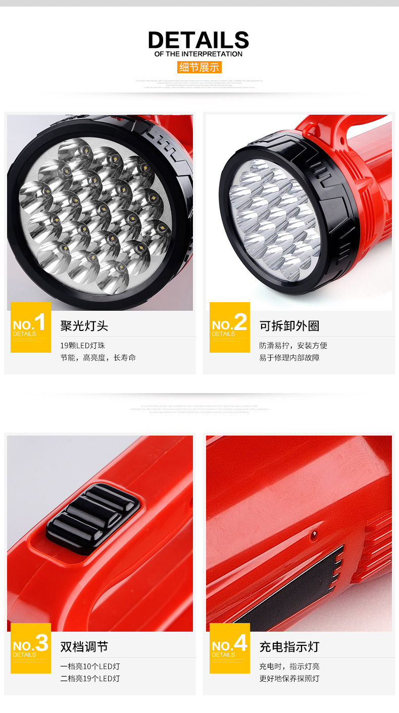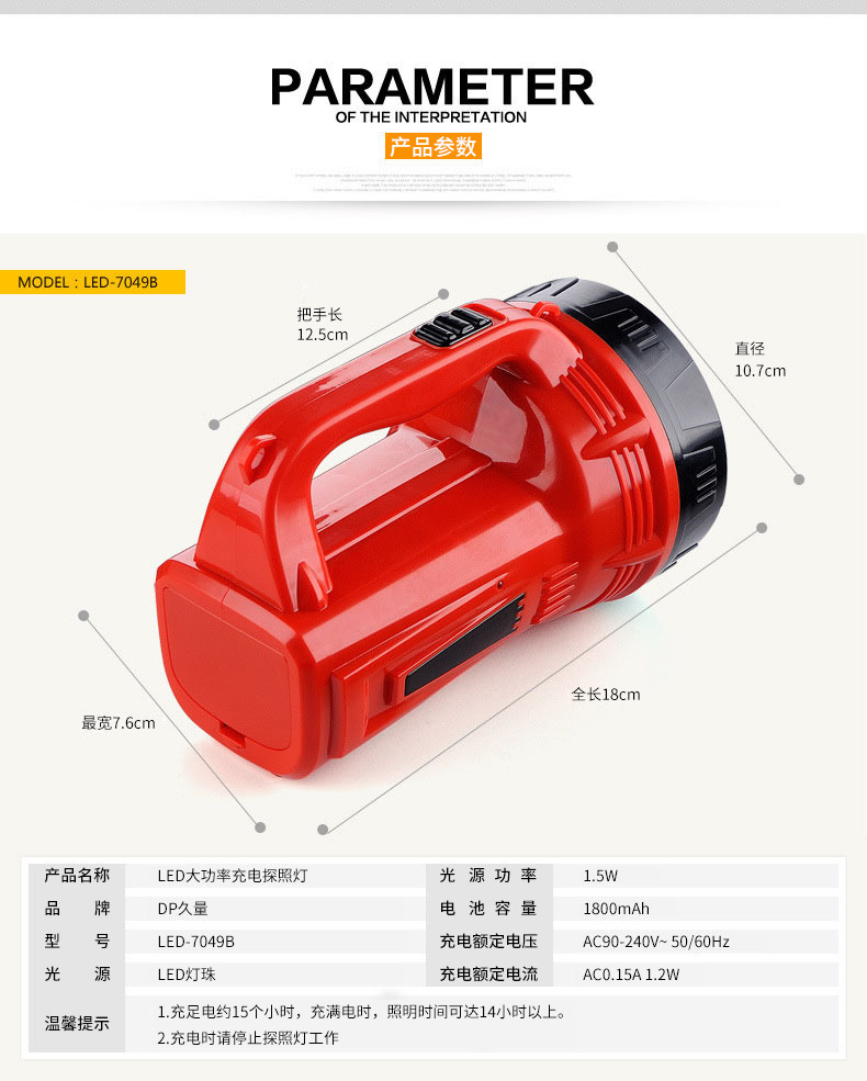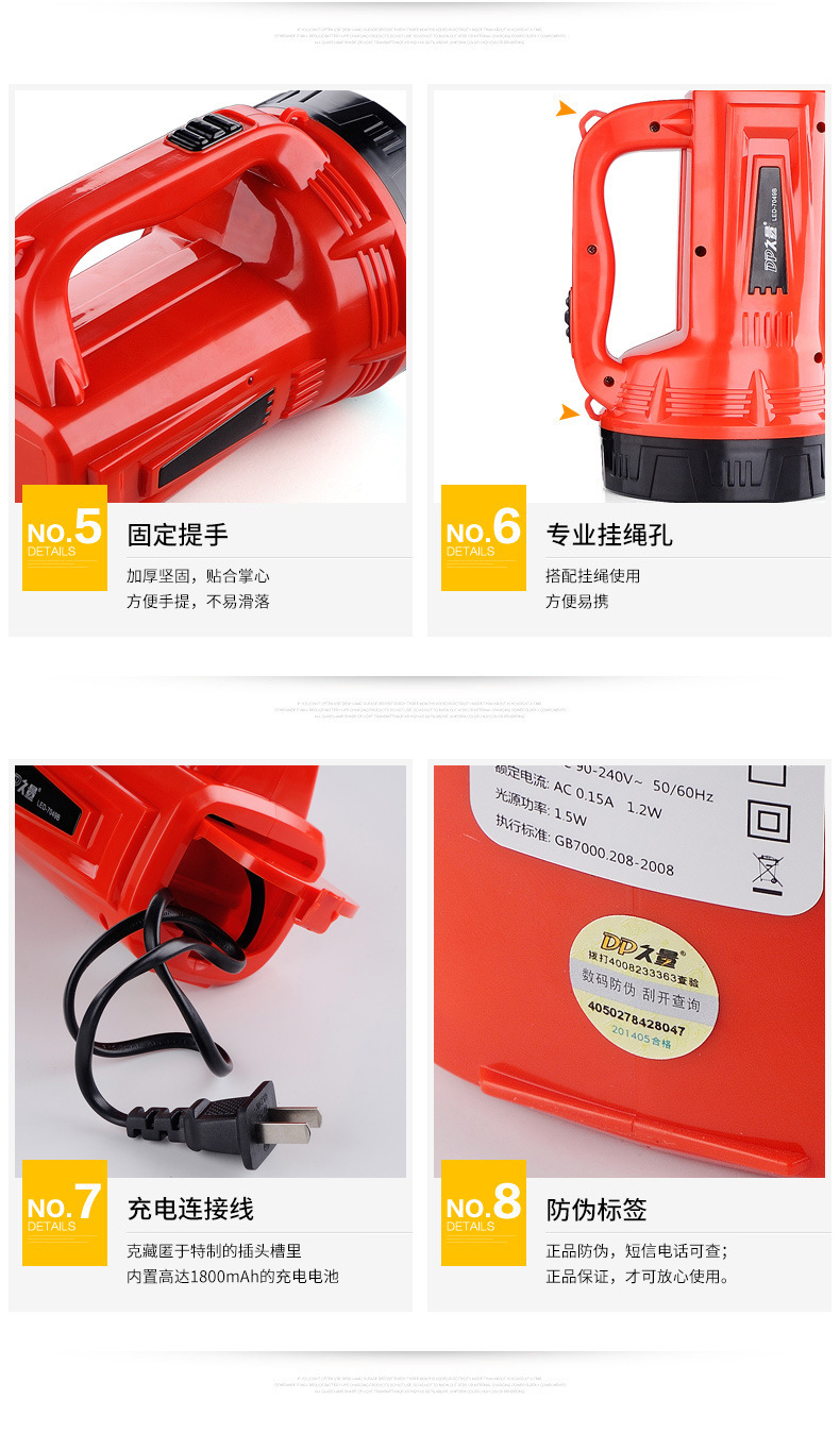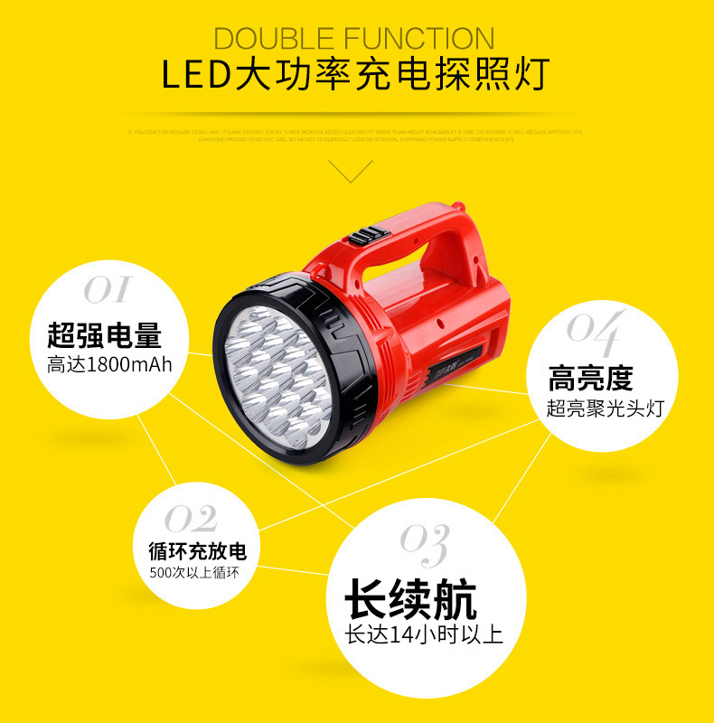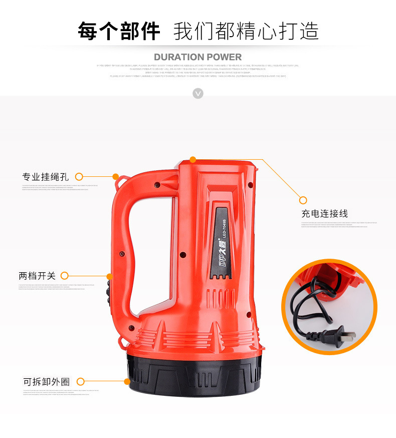 지속적인 충전식 탐조등 LED7049B 장거리 가정용 야외 캠핑 비상 조명 대형 손전등 휴대용