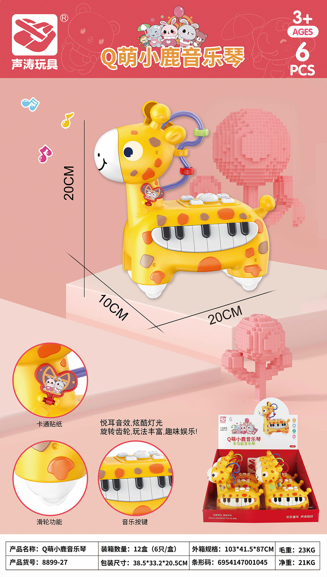 어린이 만화 새끼 사슴 동물 음악 전자 피아노 아기 핀치 음악 연주 고퍼 게임 이야기 장난감 도매스토어 가기