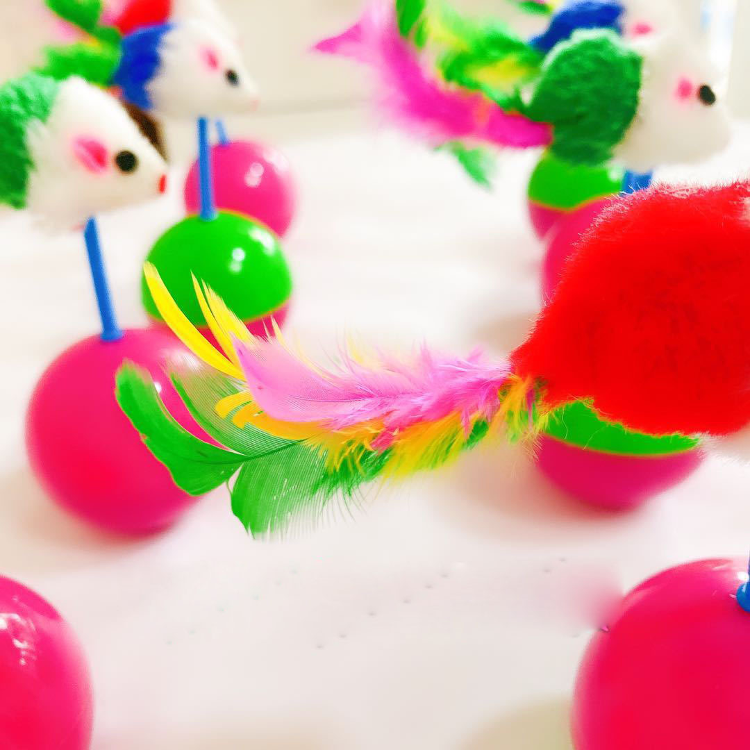 고양이 장난감 도매, 고양이 주인을 위한 애완동물 장난감, 텀블러, 모조 다채로운 깃털 쥐, 고양이와 상호 작용하는 장난감스토어 가기