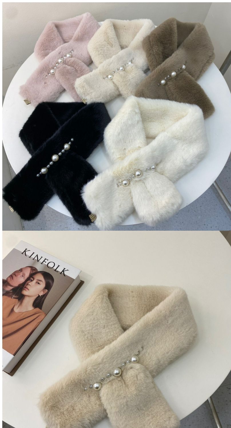 봉제 스카프 짧은 진주 구슬 겨울 모방 모피 잔디 타월 얇은 좁은 따뜻한 봉제 스카프 크로스 스카프스토어 가기