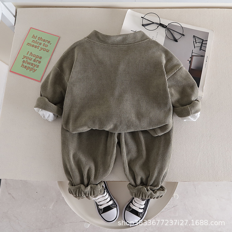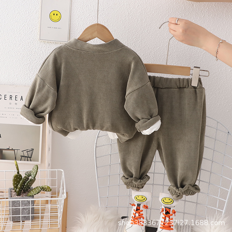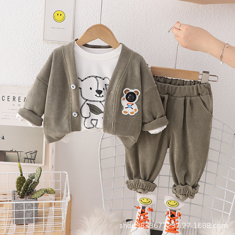 소년 가을 세트 곰 가디건 3 종 세트 아동 의류 잘 생긴 튀김 거리 3 종 세트 아기 가을 외국 스타일 세트