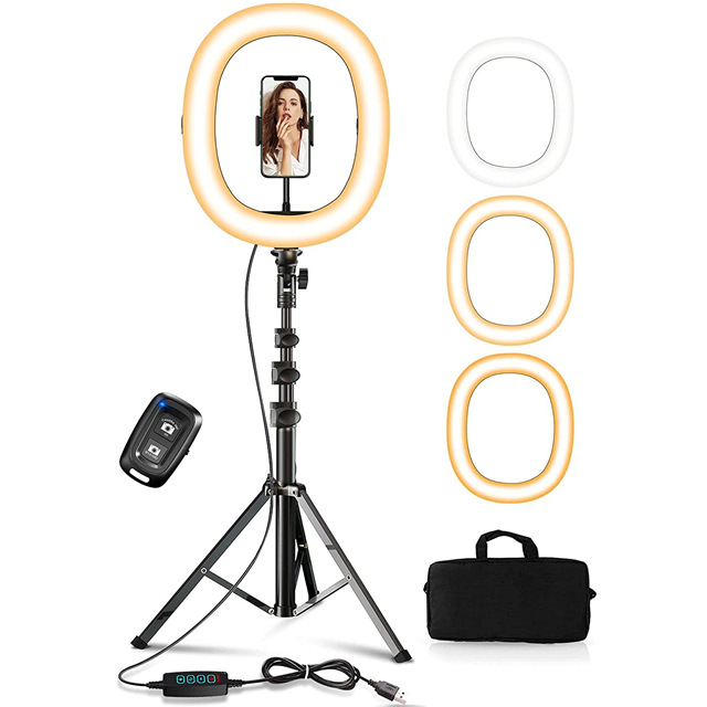 【包装清单】:10寸环形灯、落地架、蓝牙遥控器、金属软管、手机夹、收纳包、说明书、包装盒。(可定制)