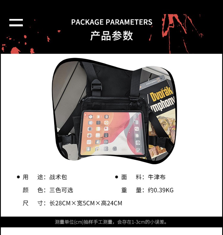 크로스 보더 패션 가슴 가방 기능성 스타일 틈새 액세서리 힙합 디자인 다크 스타일 전술 조끼 스타 같은 스타일 작업복스토어 가기