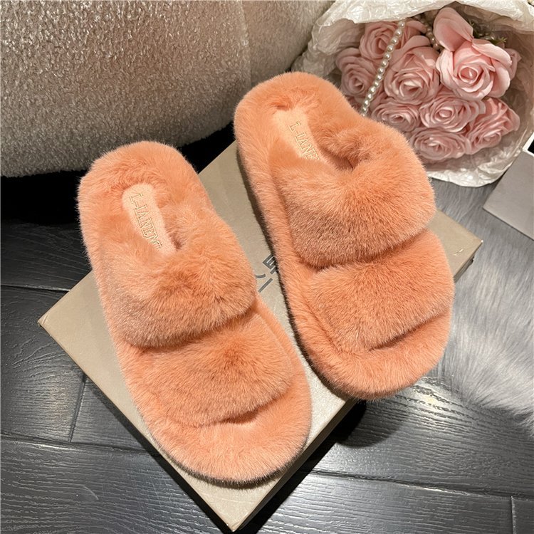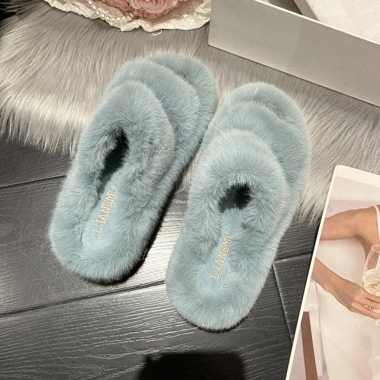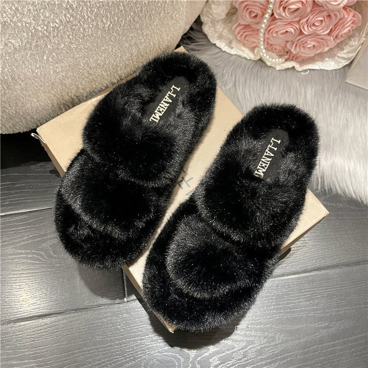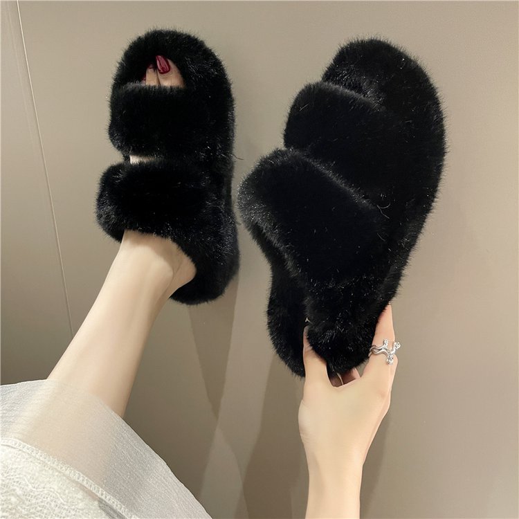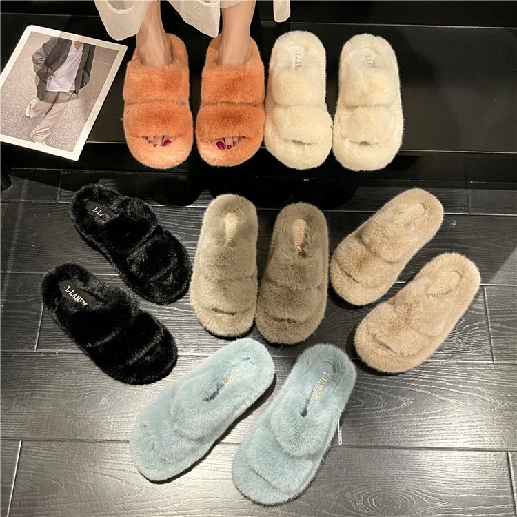 두꺼운 바닥 마오 마오 슬리퍼 여자의 가을과 겨울 더블 외국 무역 플러스 사이즈 플랫 바닥 한 단어 가정 착용 따뜻한 면 도매